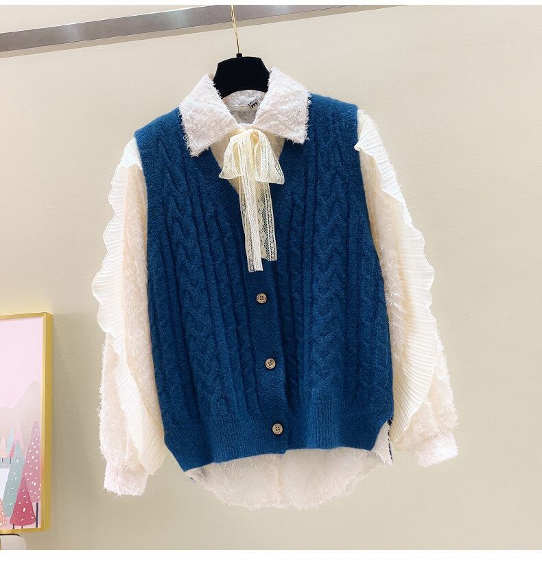 送料無料୨♥୧ スタイルスプリングオータムレディースノースリーブセーター Vネックベージュブルーニット ピンク 大人ガーリー スウィート キュート カジュアル 春物 秋物 AOS83114646506