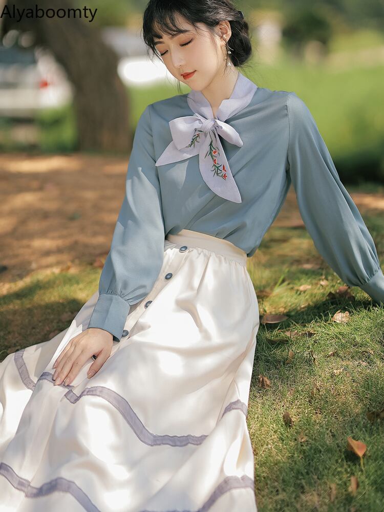送料無料୨♥୧ 森オータムスプリングレディース2個セット フローラル刺繍ランタンスリーブAラインスカート ゴージャススーツ AOS91083944330