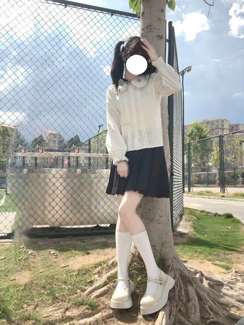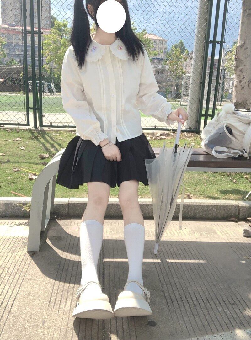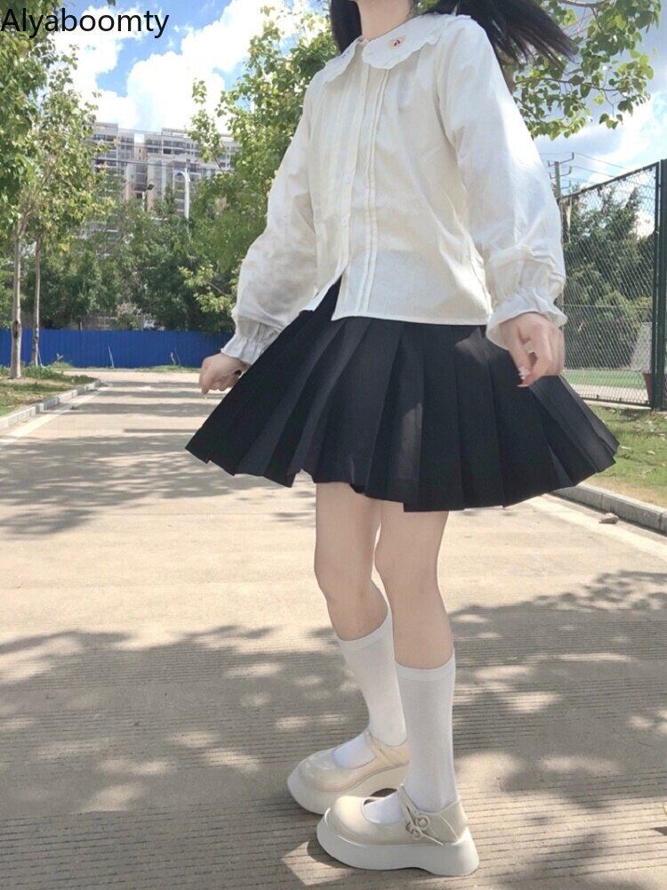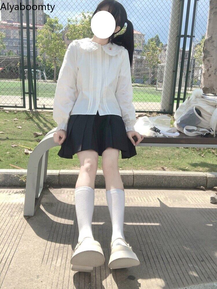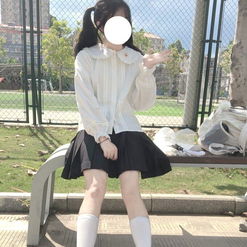 送料無料୨♥୧ eseスプリングオータムレディース可愛いホワイトブラウス ピーターパンカラー漫画刺繍ブルース長袖スリーブロリータコットンシャツ AOS41934066209