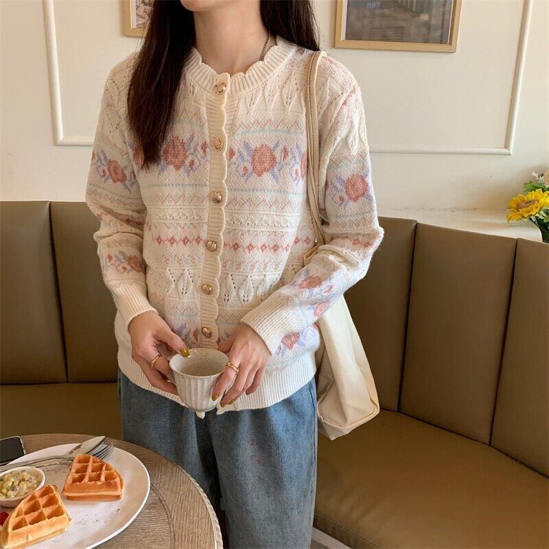 送料無料୨♥୧ スプリングオータムレディースアウターフローラルニットセーター バギーヴィンテージカーディガン 大人ガーリー スウィート キュート カジュアル 春物 秋物 花柄 ビンテージ AOS75582761221