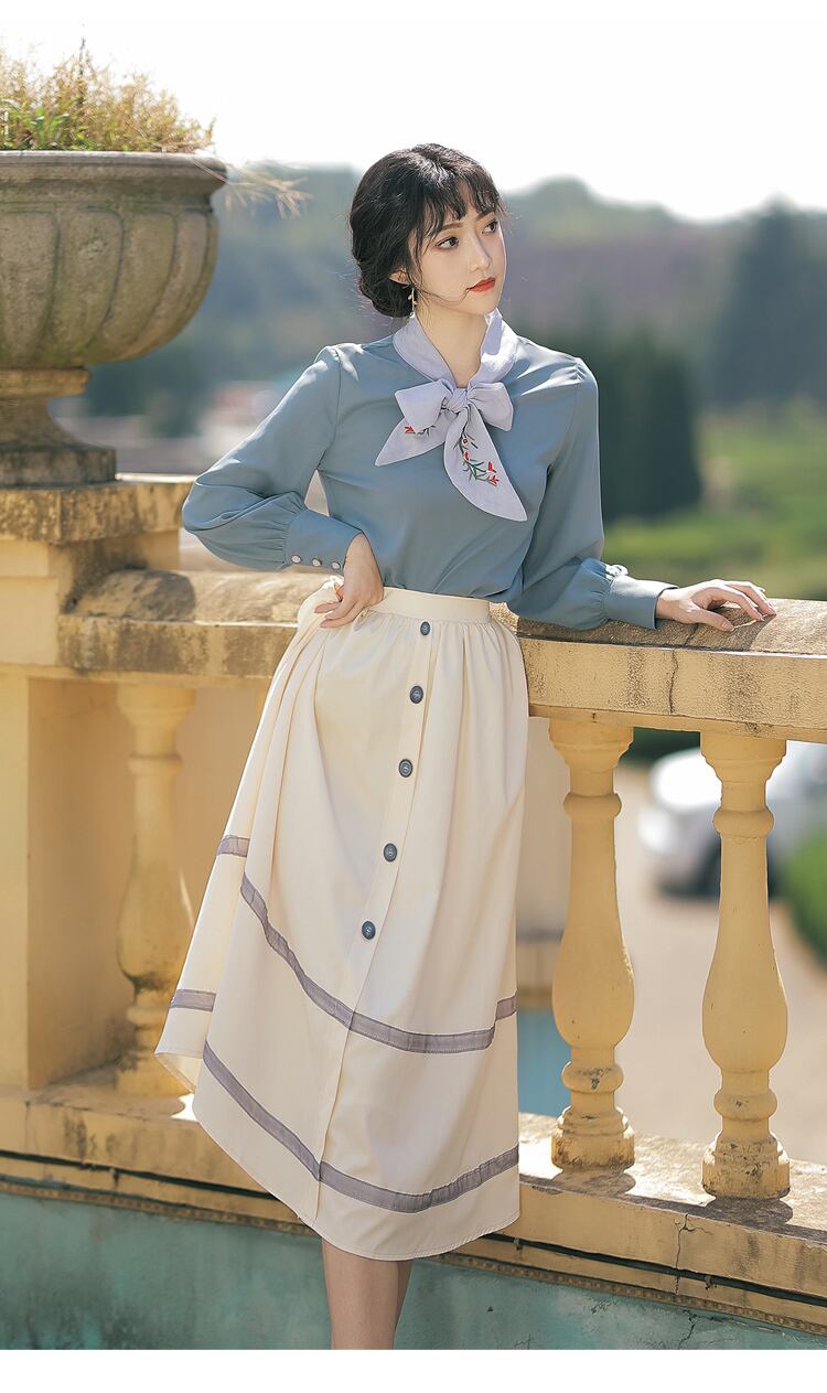 送料無料୨♥୧ オータムスプリングレディースセット フローラル刺繍スリーブAラインスカート ランタンスリーブ 大人ガーリー スウィート キュート カジュアル 春物 秋物 花柄 AOS4362424873