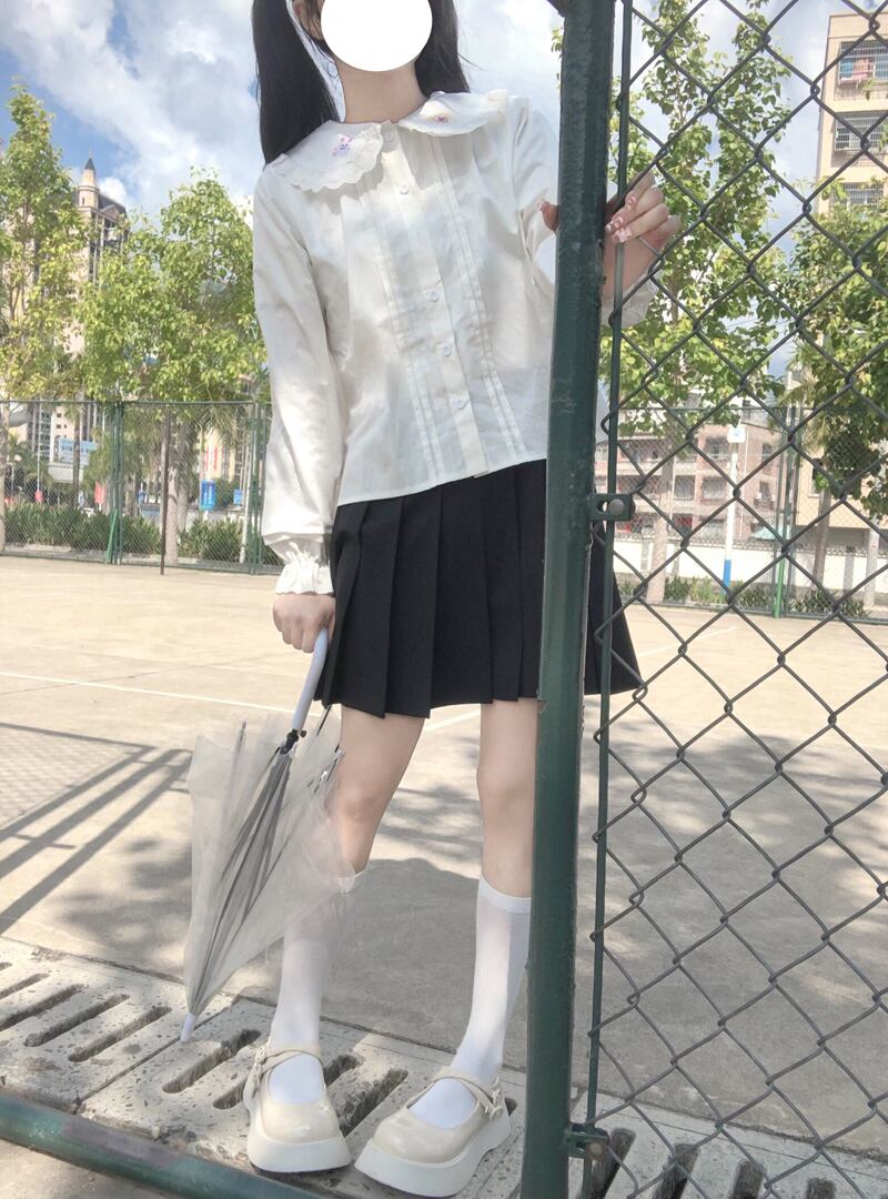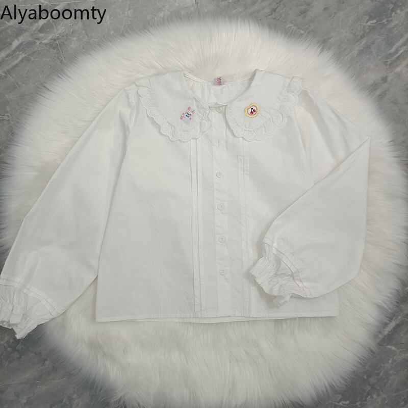 送料無料୨♥୧ スプリングオータムレディースホワイトブラウス カラー刺繍長袖スリーブシャツ ロング コットン 大人ガーリー スウィート キュート カジュアル 春物 秋物 AOS86961124887