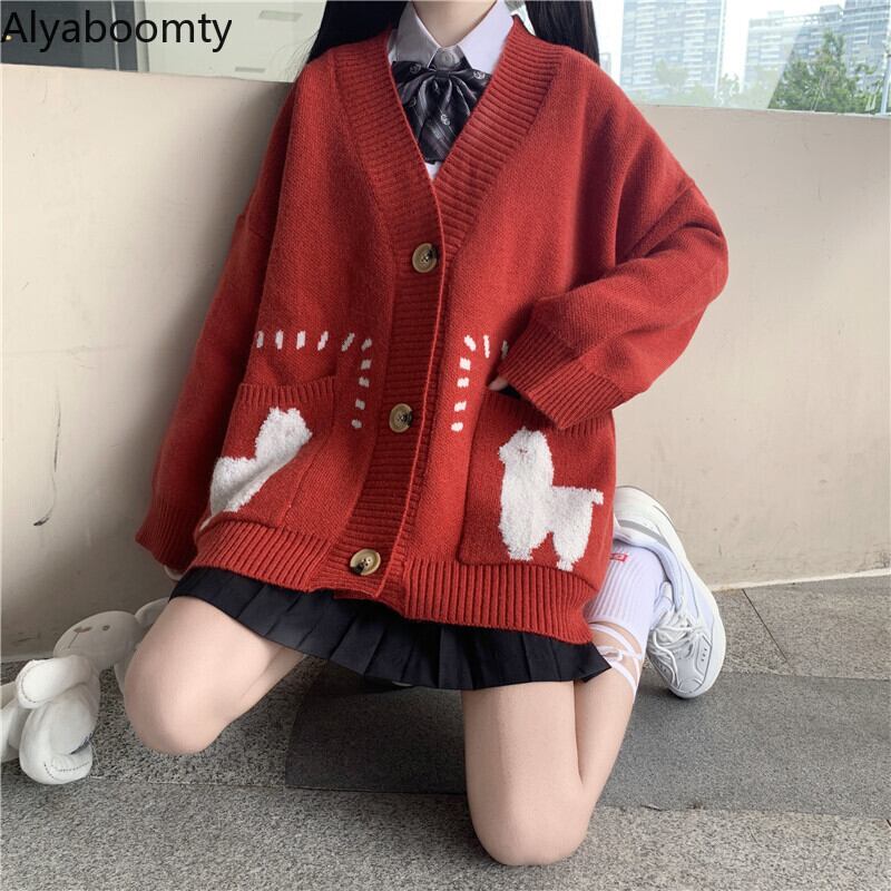 送料無料୨♥୧ スタイルスプリングオータムレディースセーター Vネックパターンニットカーディガンルーズアウター 大人ガーリー スウィート キュート カジュアル 春物 秋物 AOS44407732113