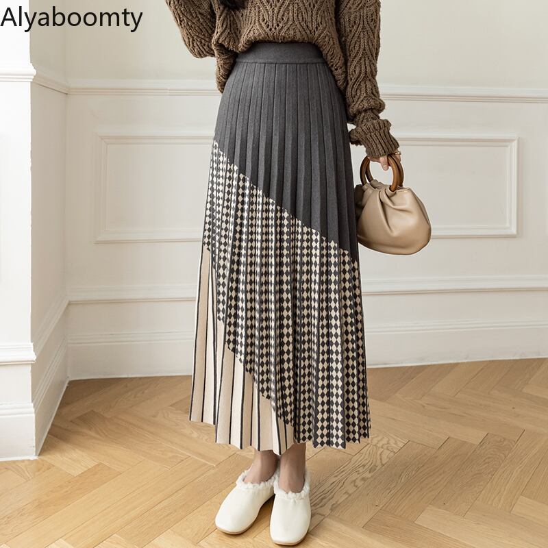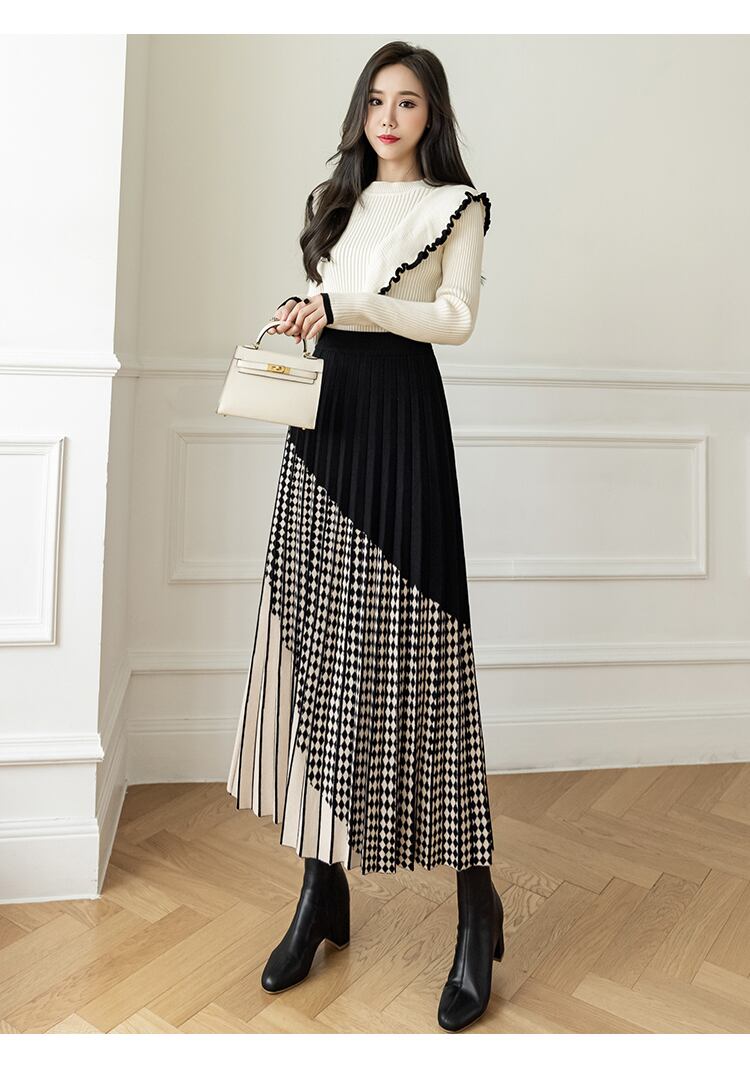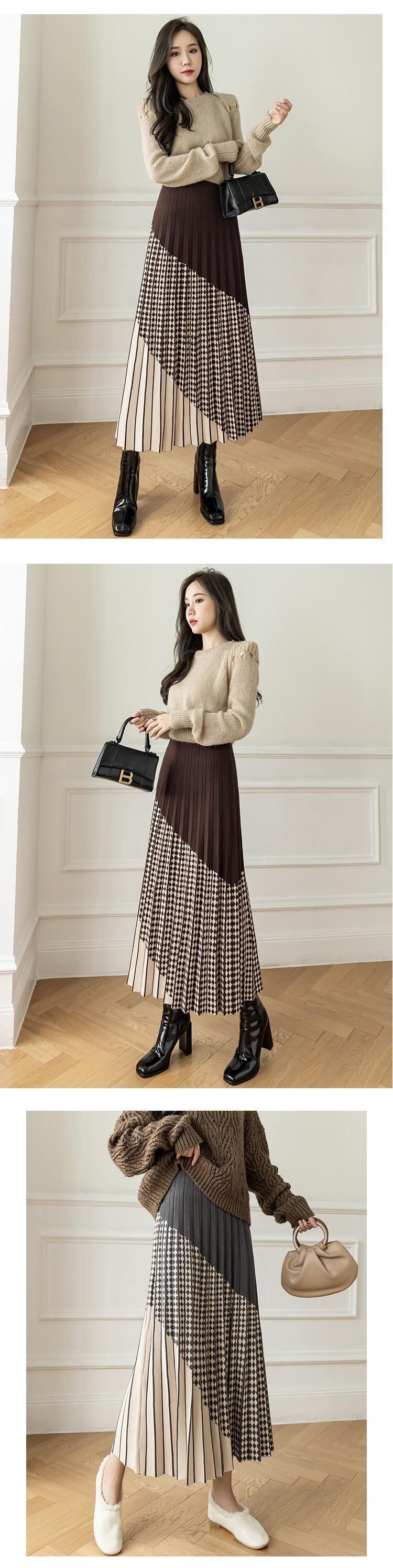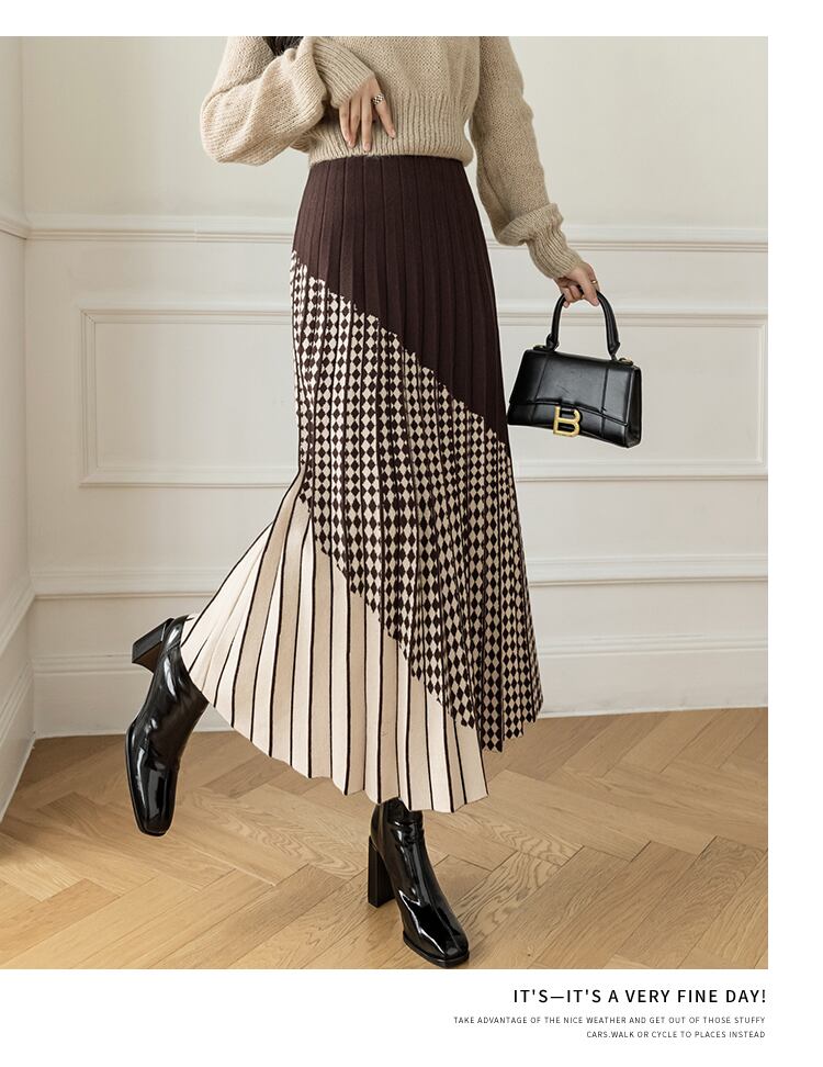送料無料୨♥୧ ウィンターレディースマキシロングスカート ウェストブラウングレーブラックニット プリーツ 冬物 AOS29122040176