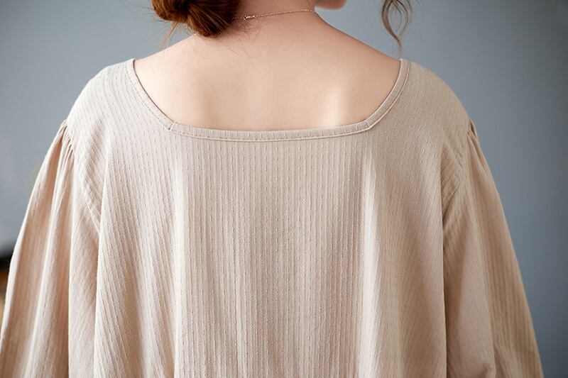 送料無料୨♥୧ スプリングオータムレディースルーズソリッド バギーミディドレス 長袖スリーブヴィンテージガウン ロング コットン 春物 秋物 ソリッドカラー ビンテージ AOS63852112507