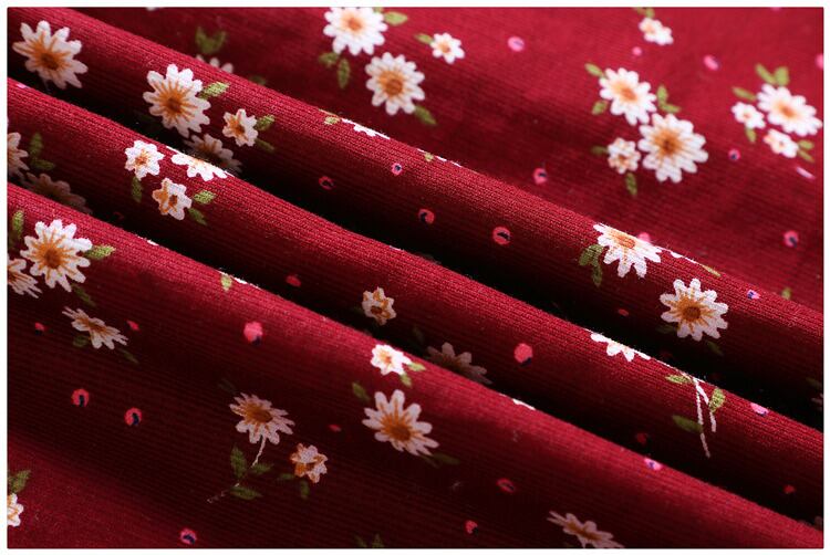 送料無料୨♥୧ スプリングオータムレディースミディドレス カラーレッドフローラルコーデュロイ長袖スリーブ ロング 大人ガーリー スウィート キュート カジュアル 春物 秋物 花柄 AOS69467754004