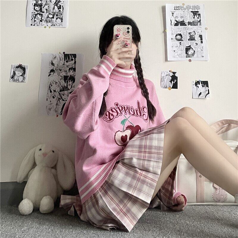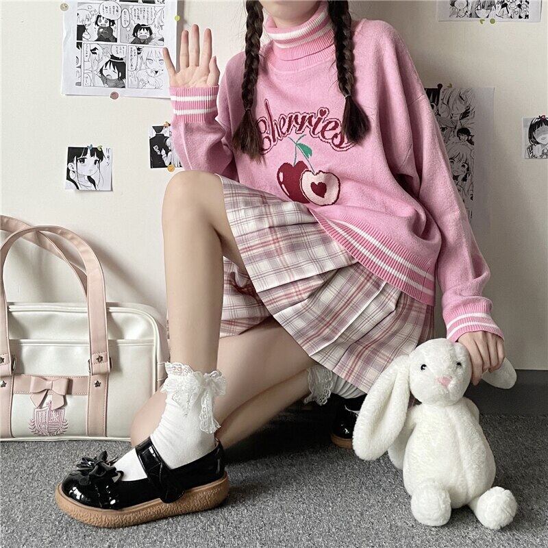 送料無料୨♥୧ eseロリータスタイルオータムウィンターレディースセーター タートルネックピンクブルー刺繍フルーツプルオーバー 可愛いアウター AOS43806559204