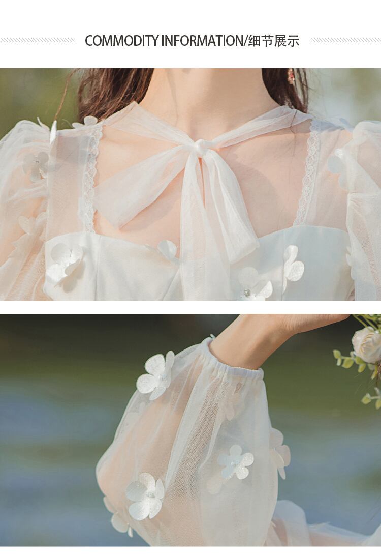 送料無料୨♥୧ スプリングオータムレディースロングホワイトドレス カラーフローラルスリーブ 春物 秋物 花柄 スクウェア AOS73863571800