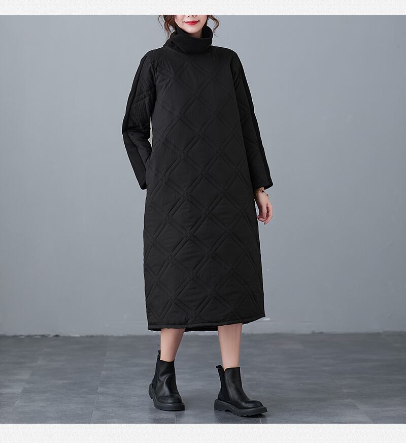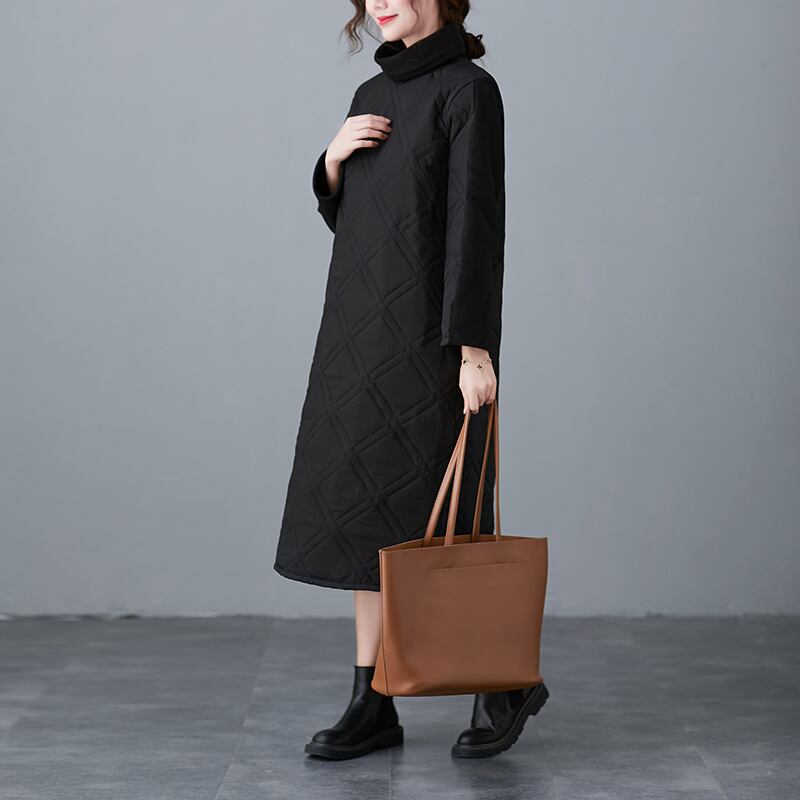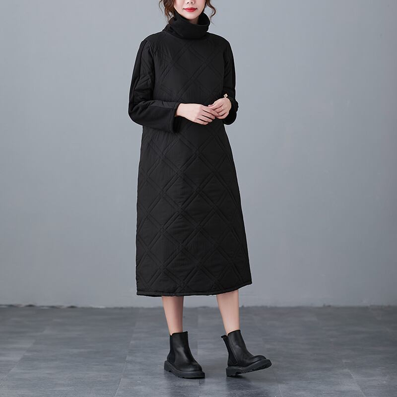 送料無料୨♥୧ オータムウィンターレディースロングドレス ブラック格子柄バギー 秋物 冬物 AOS67352381310