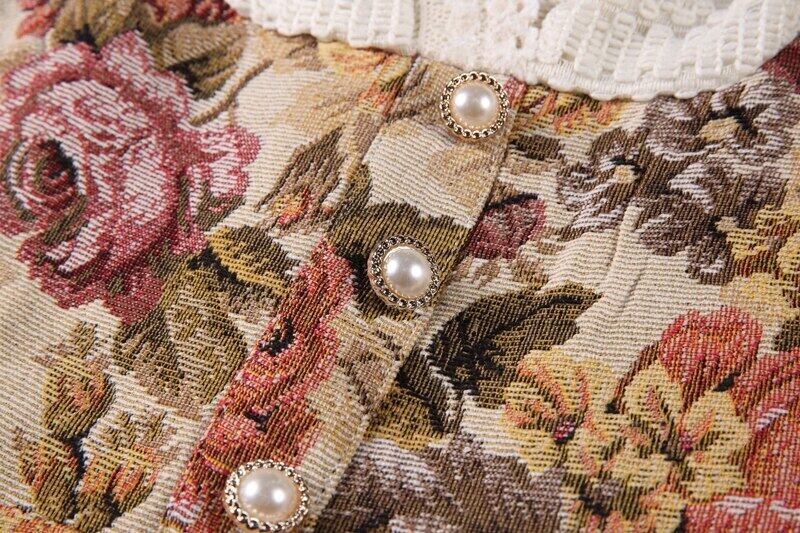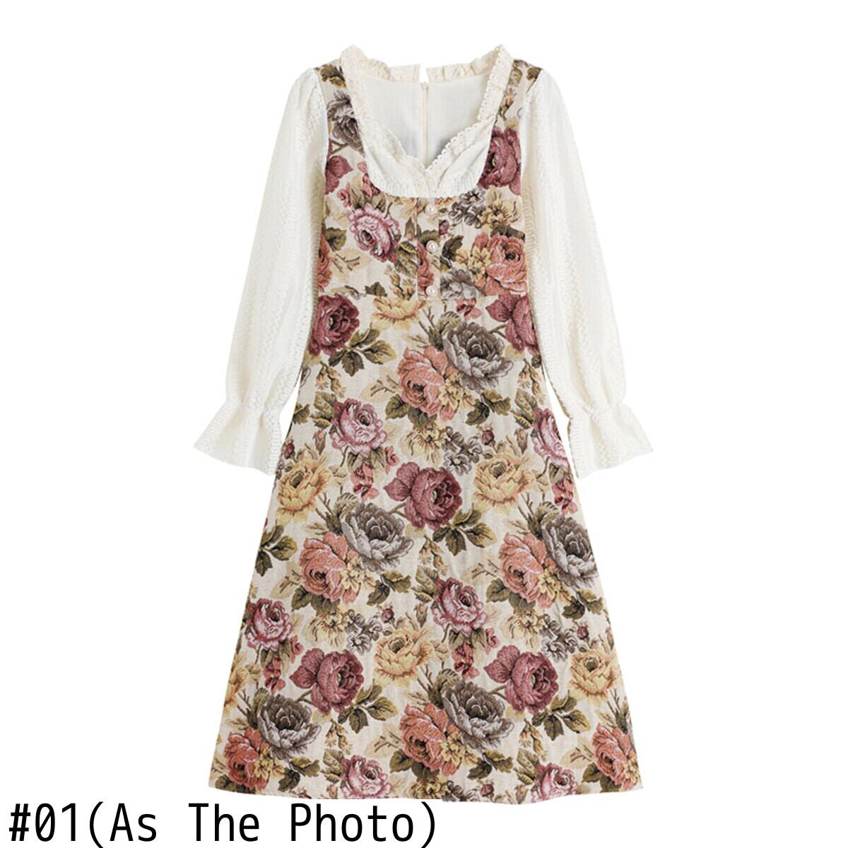 送料無料୨♥୧ スプリングオータムレディースフランス語ロマンチックドレス 平方カラーレースパッチワークフローラルヴィンテージジャカードミディ AOS19844903919