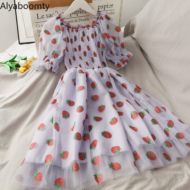 送料無料୨♥୧ サマーレディースイチゴミニ可愛いドレス スラッシュ首ピンクホワイト紫のブラックメッシュチュール AOS61025298370