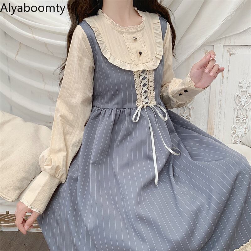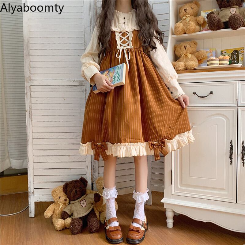 送料無料୨♥୧ レディーススプリングドレス レッドブルーブラウンバンドリボンストライプフリル ラッフル 大人ガーリー スウィート キュート カジュアル 春物 AOS36794115056