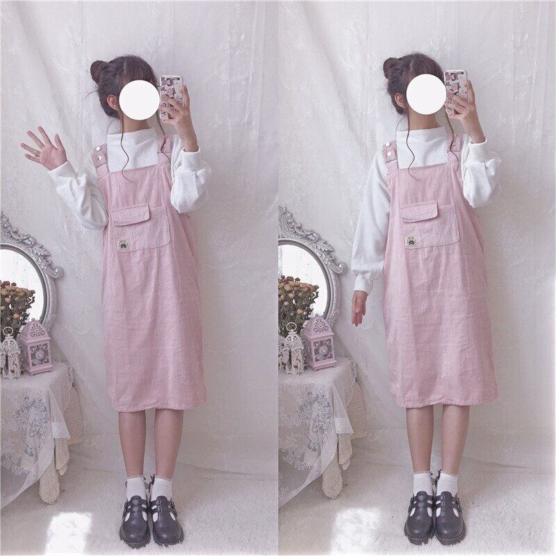 送料無料୨♥୧ スタイルオータムレディースドレス ブルーポケットルーズコーデュロイノースリーブ ピンク 大人ガーリー スウィート キュート カジュアル 秋物 AOS96950018028