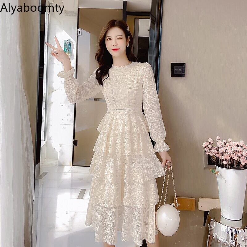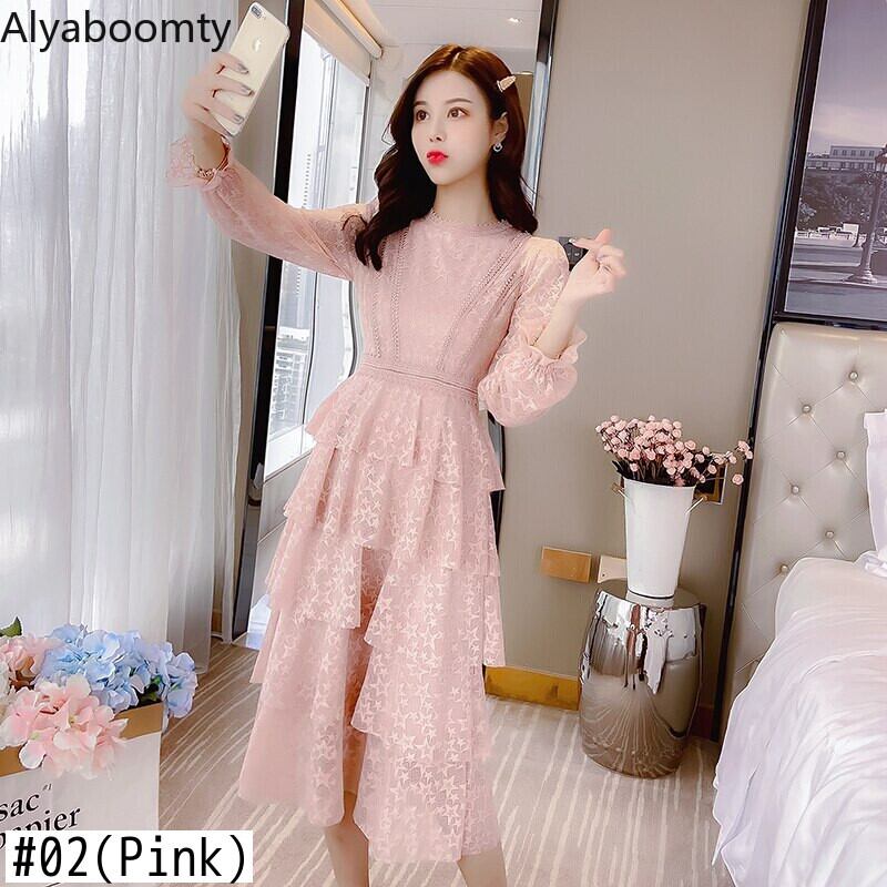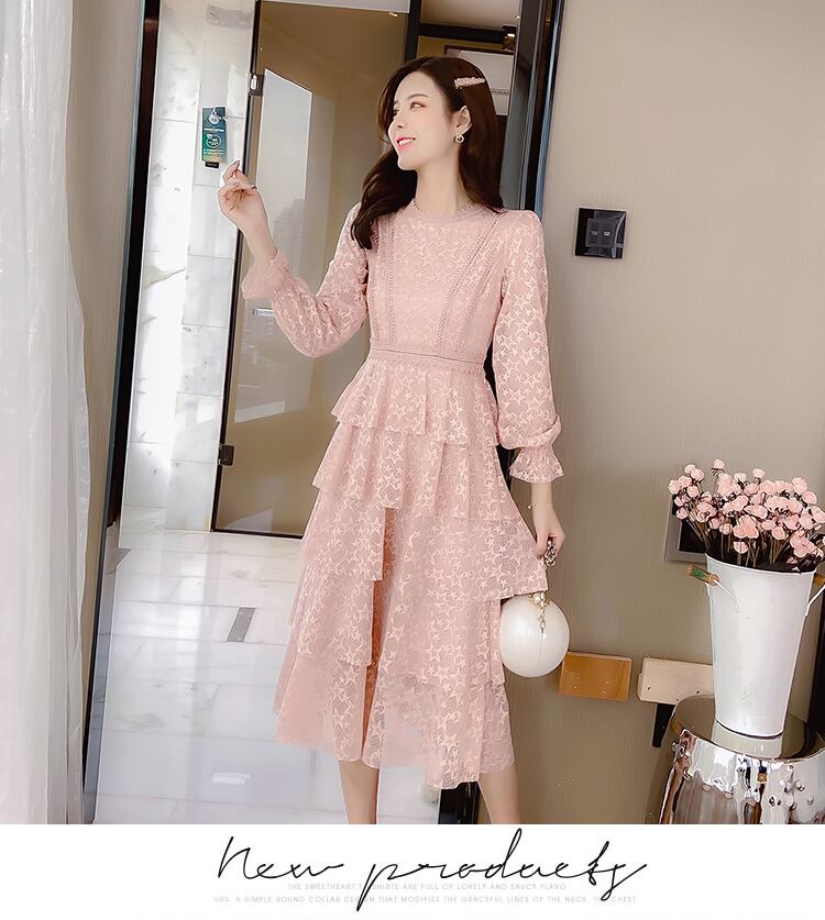 送料無料୨♥୧ スプリングオータムレディースミディドレス フリルレース ピンク レッド ラッフル 春物 秋物 AOS72134416824