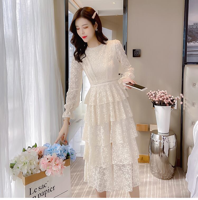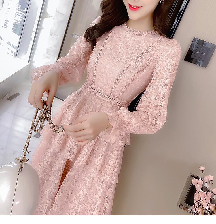 送料無料୨♥୧ スプリングオータムレディースミディドレス フリルレース ピンク レッド ラッフル 春物 秋物 AOS72134416824