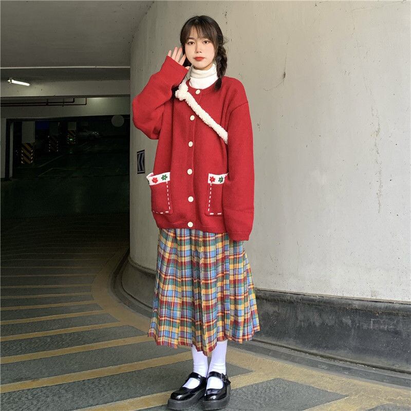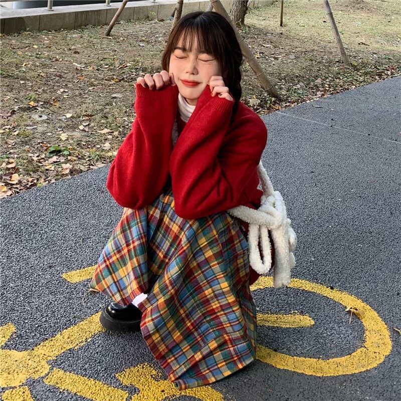 送料無料୨♥୧ ese森オータムレディーススカート ウェストパステル格子柄ロング可愛いプレッピープリーツ AOS53731788469