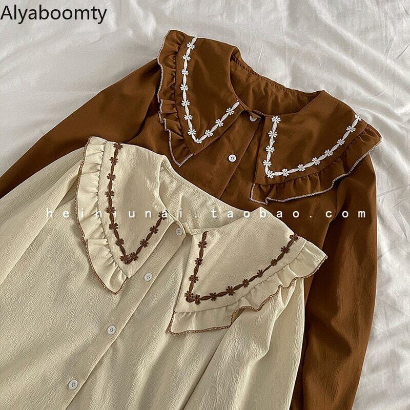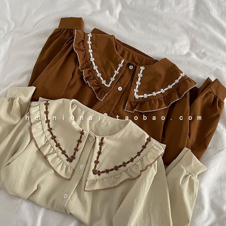送料無料୨♥୧ スタイルスプリングオータムレディースブラウス カラーホワイトブラウンフローラルシャツ 大人ガーリー スウィート キュート カジュアル 春物 秋物 花柄 AOS20888958296