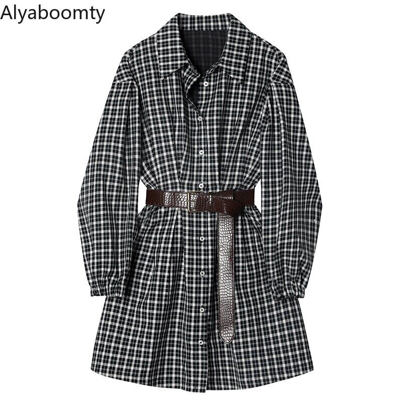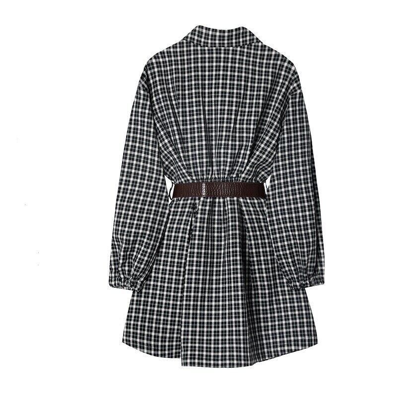 送料無料୨♥୧ レディースミニシャツ ドレス カラー格子柄ベルト 長袖スリーブヴィンテージショートドレス ワンピース ロング かわいい ハーネス ビンテージ AOS88150537807