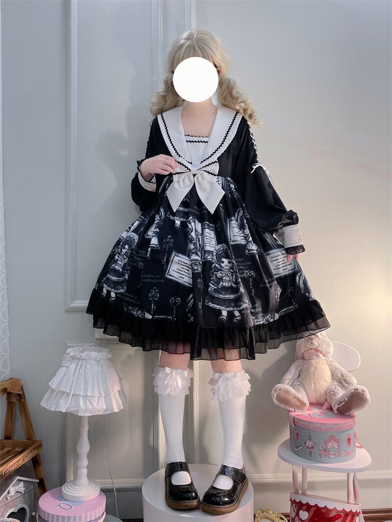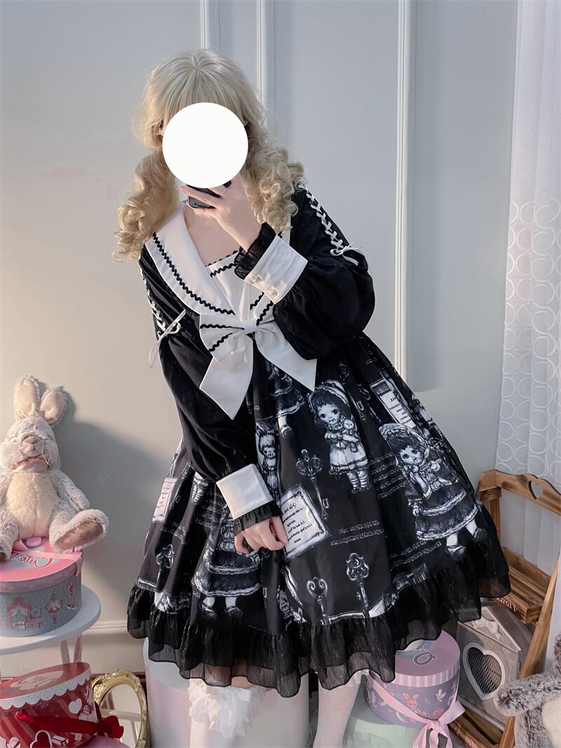 送料無料୨♥୧ レディースブラックフリルドレス カラーリボン ラッフル 大人ガーリー スウィート キュート カジュアル AOS93456316231