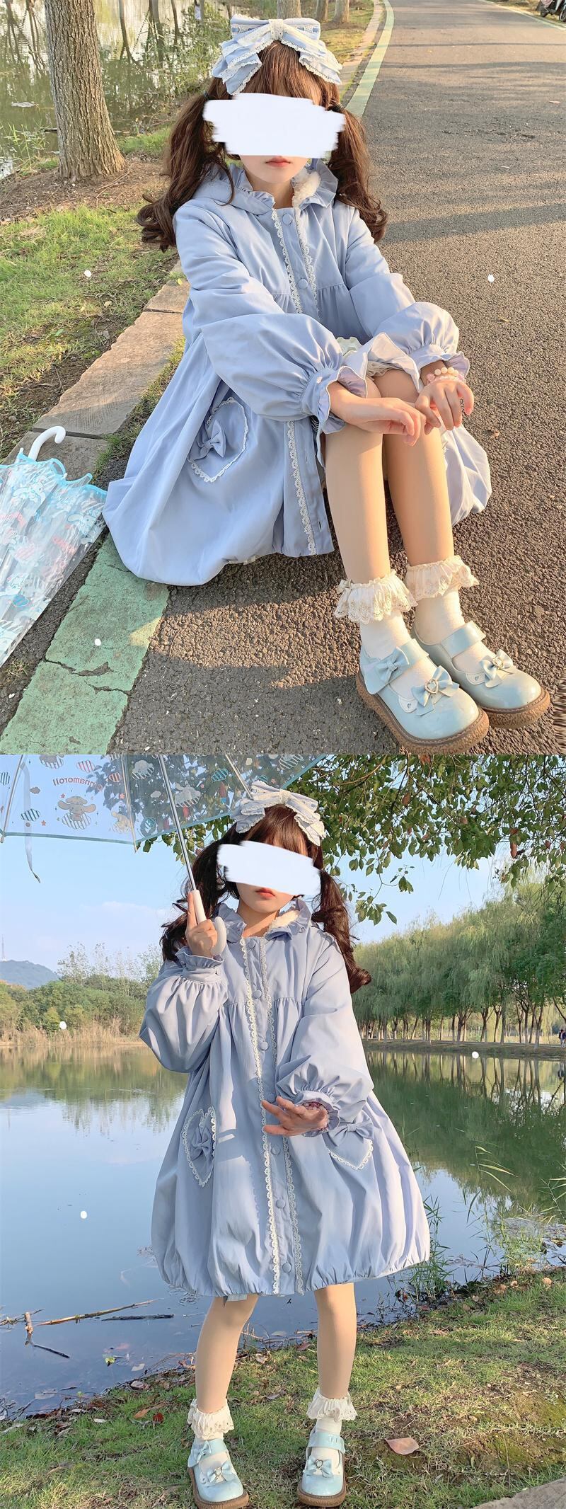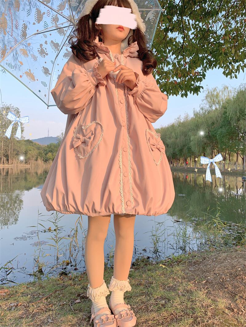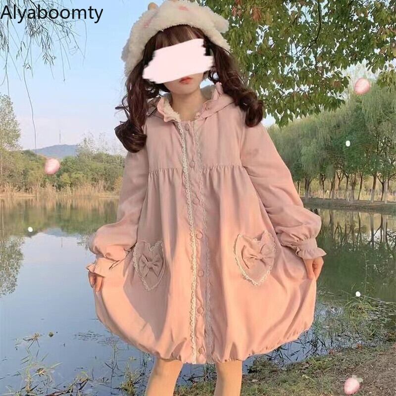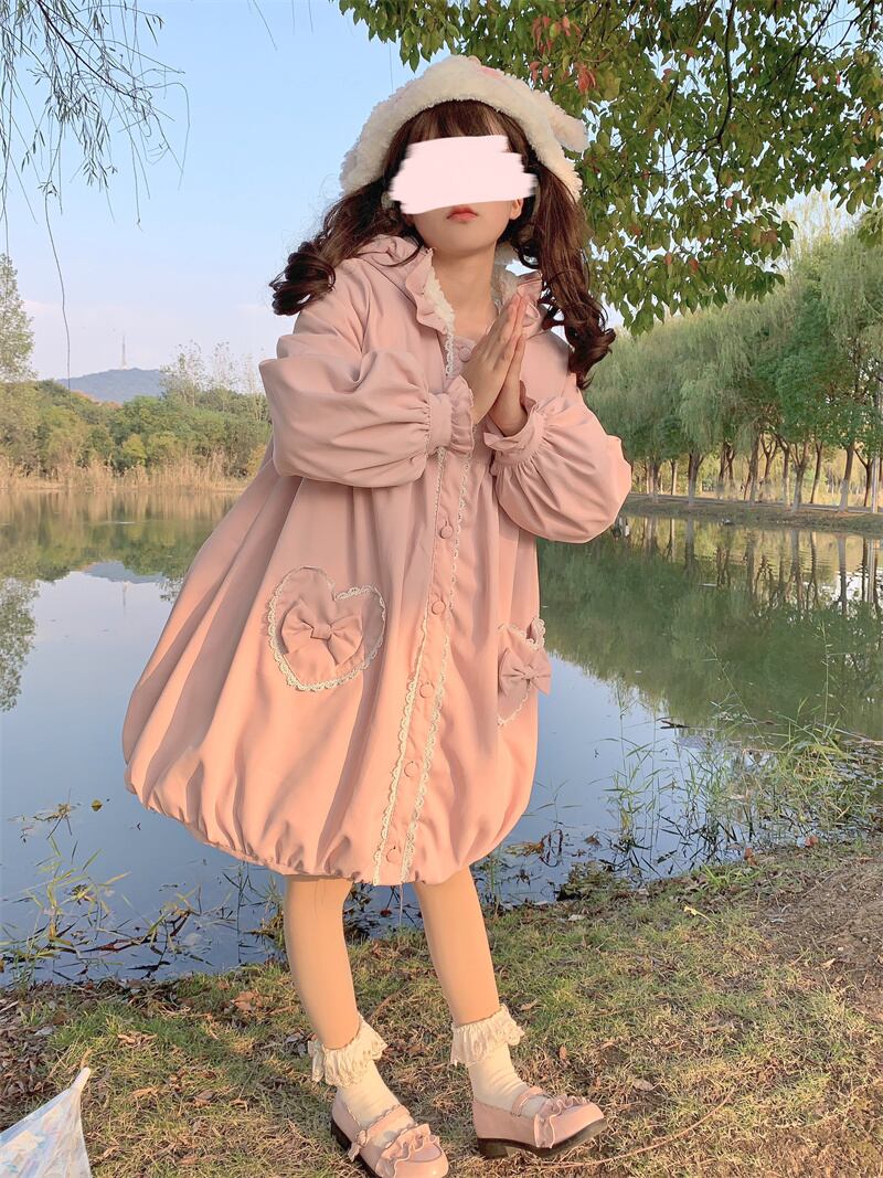 送料無料୨♥୧ eseロリータスタイルレディースウィンターコート フードバニーピンクブルー厚くするフリース甘いアウター可愛いの AOS39090122137
