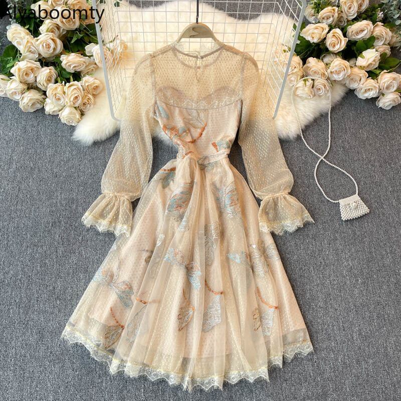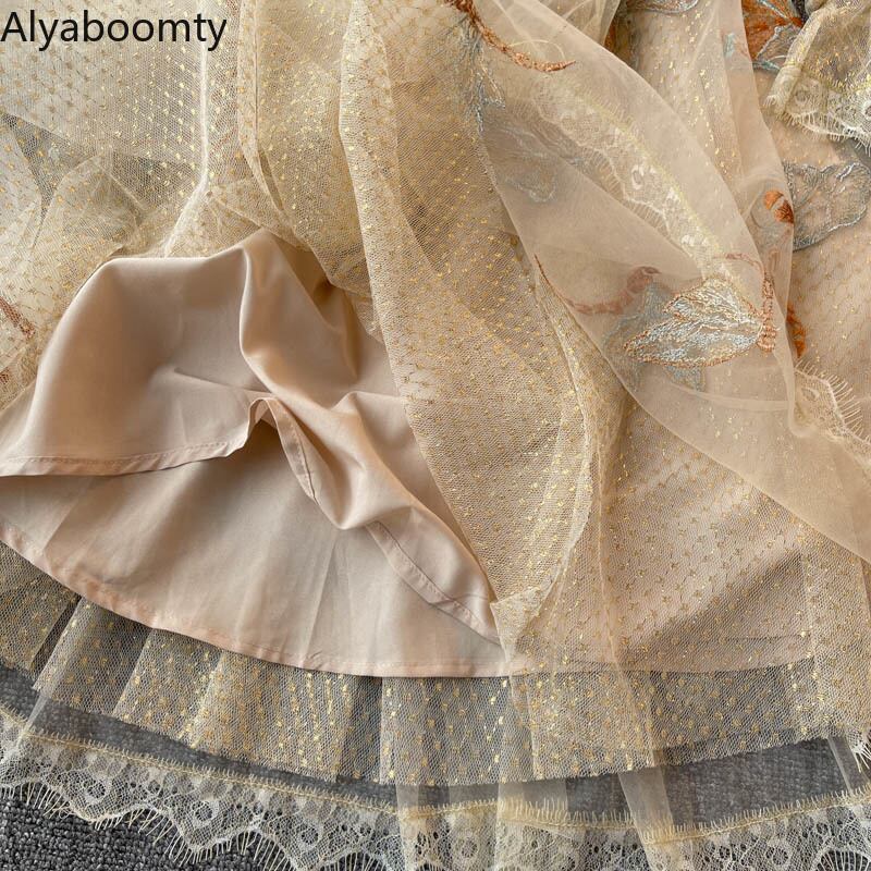 送料無料୨♥୧ シックスプリングオータムレディースパーティードレス スタンドカラーカラー刺繍繊細メッシュtelレースチュールゴージャス AOS92673591054