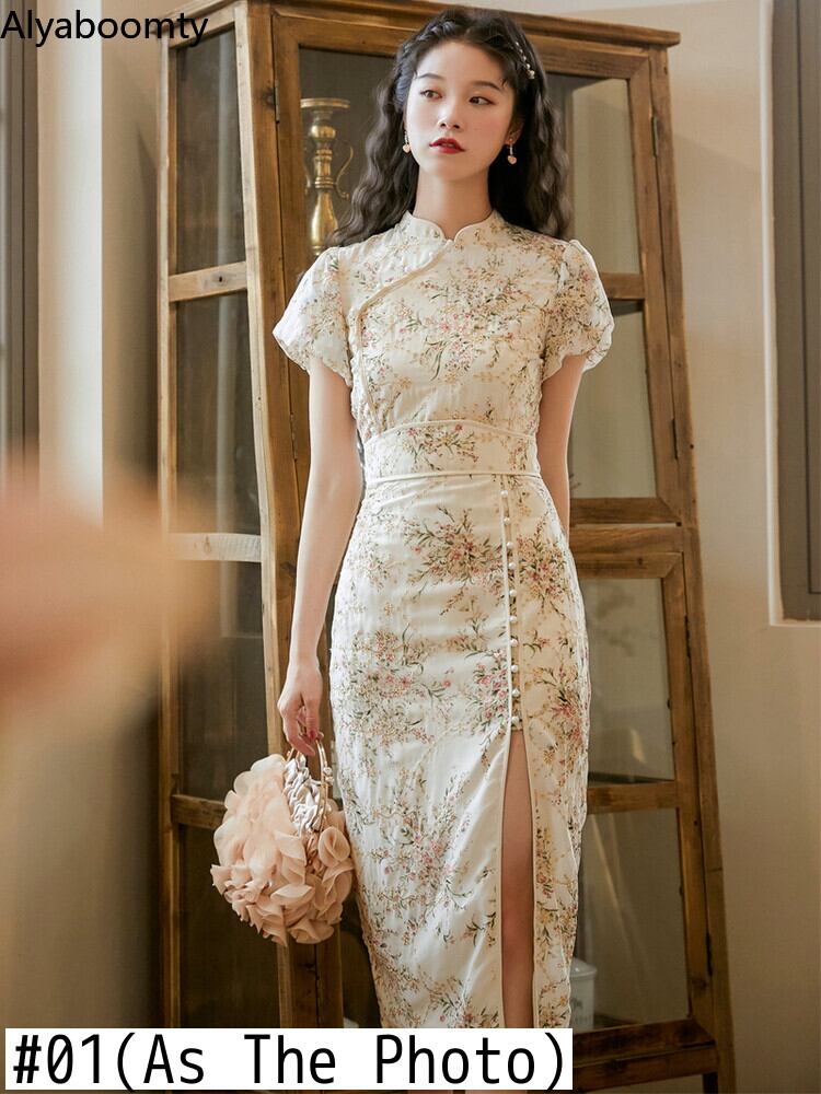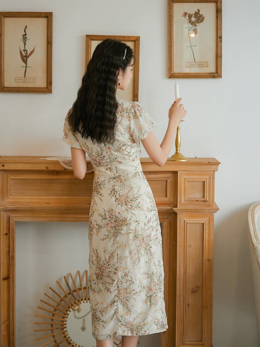 送料無料୨♥୧ ロングサマードレス スタンドカラーカラーフローラルプリントスリーブ刺繍 夏物 花柄 AOS3240270769
