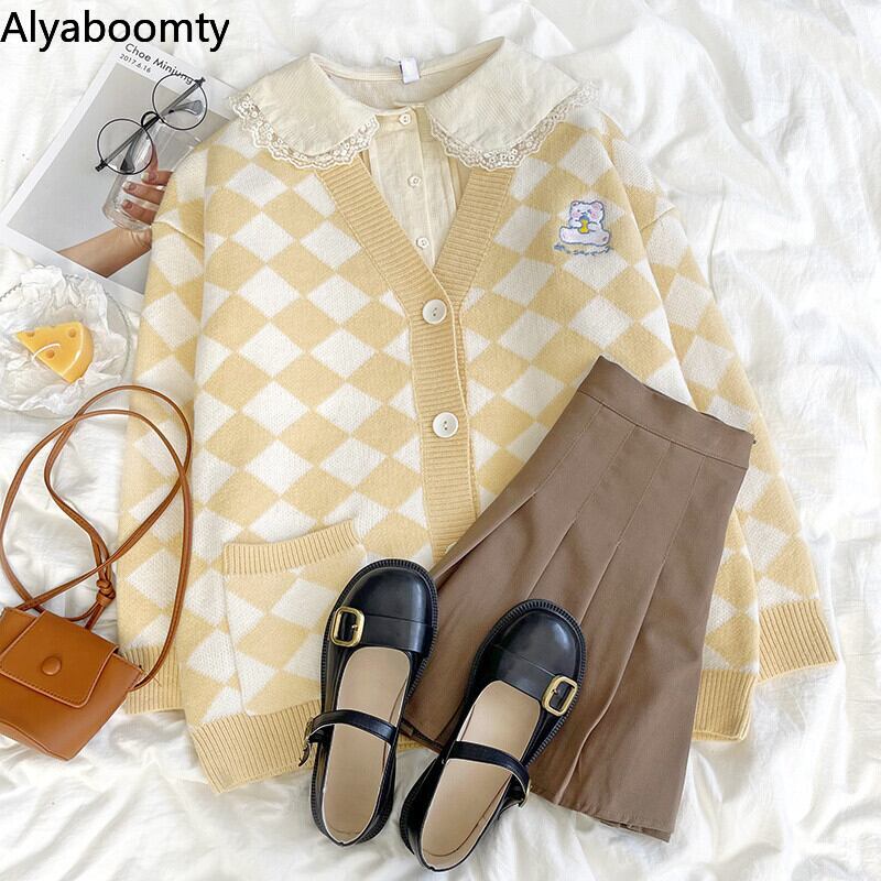 送料無料୨♥୧ スプリングオータムレディースルーズカーディガンVネックイエローニットアウター 大人ガーリー スウィート キュート カジュアル 春物 秋物 AOS59337681023