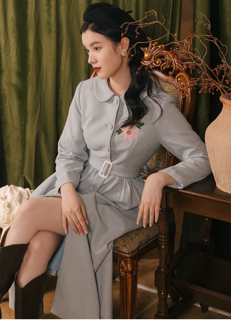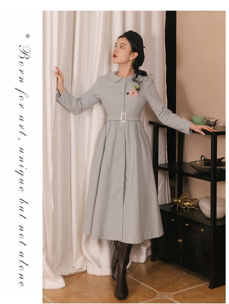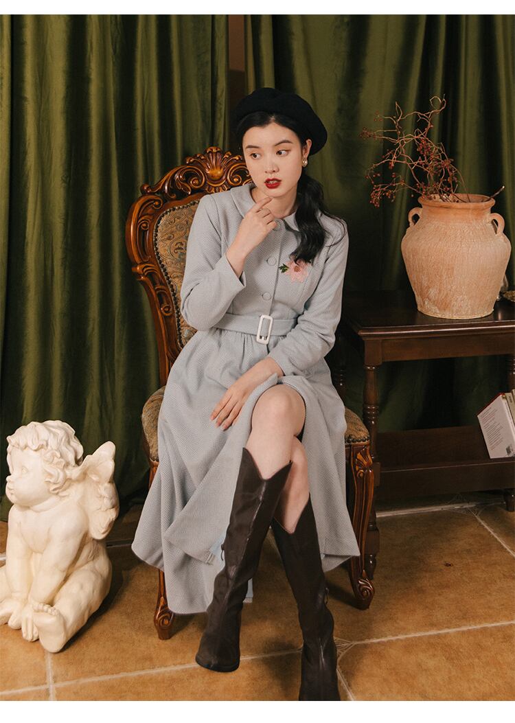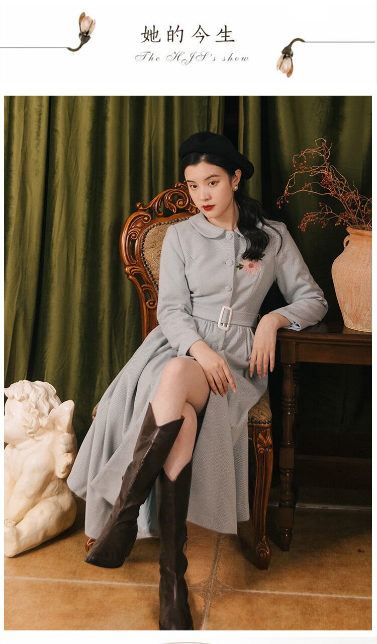 送料無料୨♥୧ スタイルオータムウィンターレディースウールドレス カラー刺繍カーディガンミディヴィンテージ 秋物 冬物 ビンテージ ヨーロピアン AOS18677455358