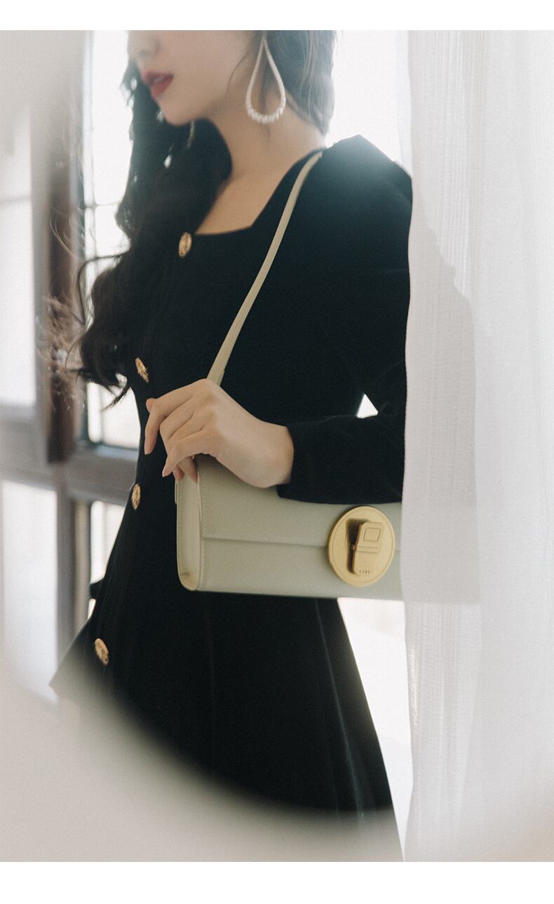 送料無料୨♥୧ スプリングオータムレディースブラックワインレッドミニドレス 平方カラーゴシックベルベットAラインパフスリーブヴィンテージ AOS23666487825