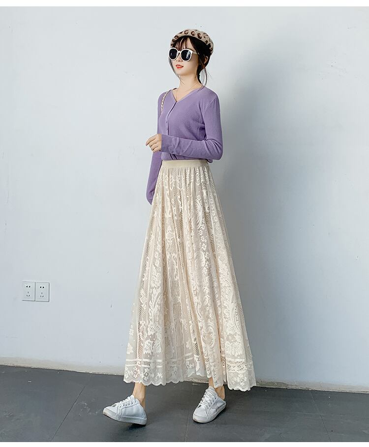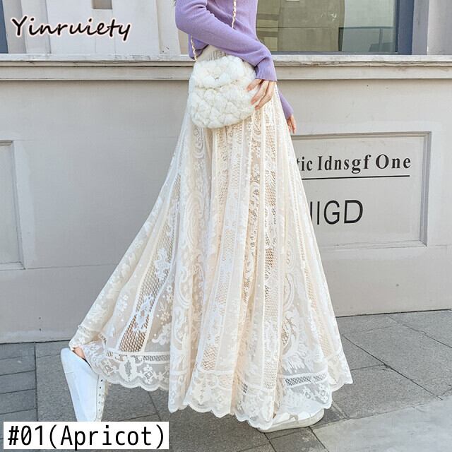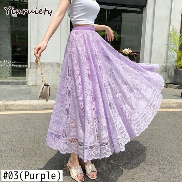 送料無料୨♥୧ スプリングサマーレディースマキシスカート ホワイトブラックレースミディ 大人ガーリー スウィート キュート カジュアル 春物 夏物 パープル AOS84370689541