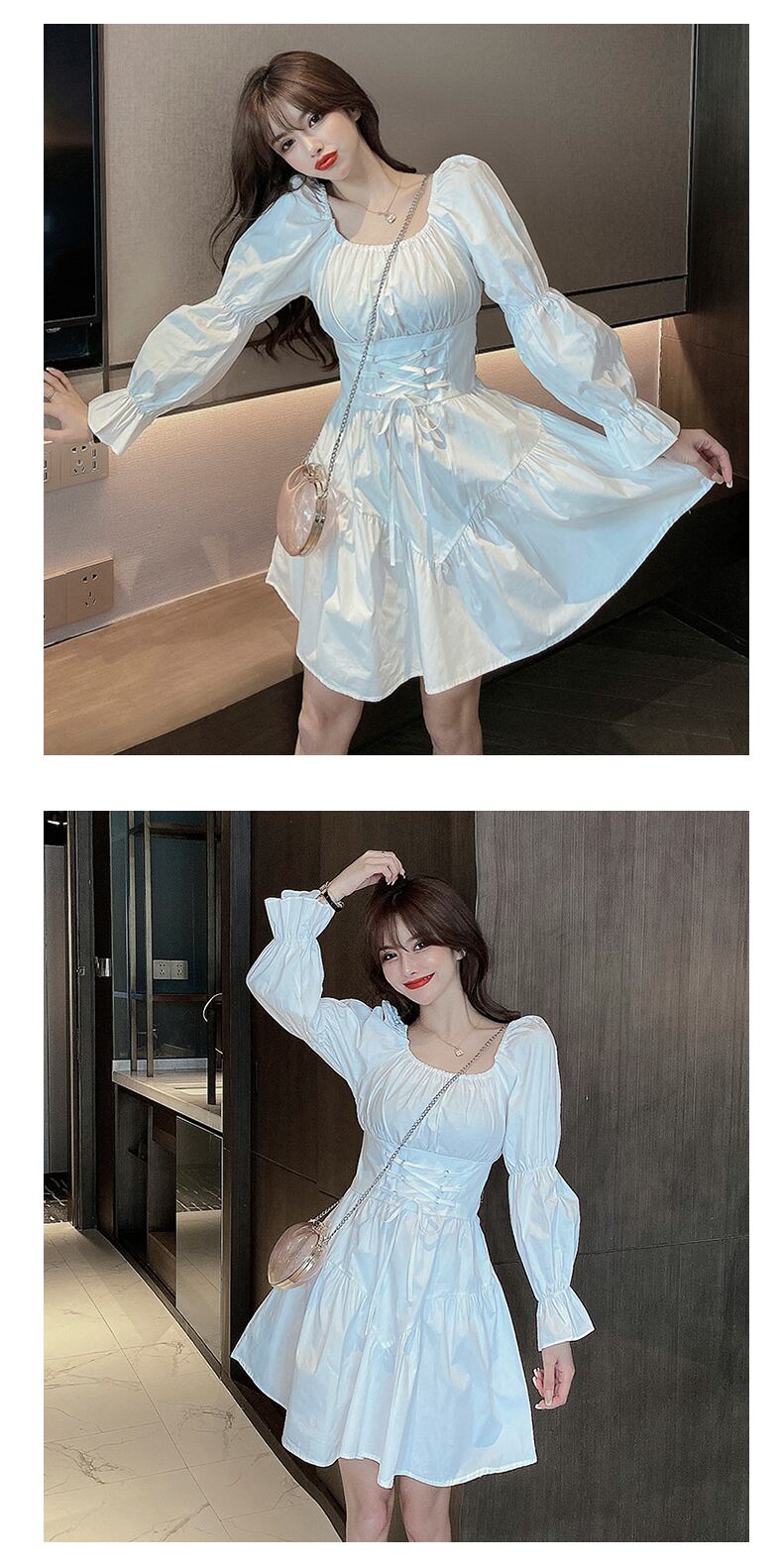 送料無料୨♥୧ スプリングオータムレディースミニドレス ホワイトブラックバンドスリーブ 大人ガーリー スウィート キュート カジュアル かわいい 春物 秋物 AOS75266217563