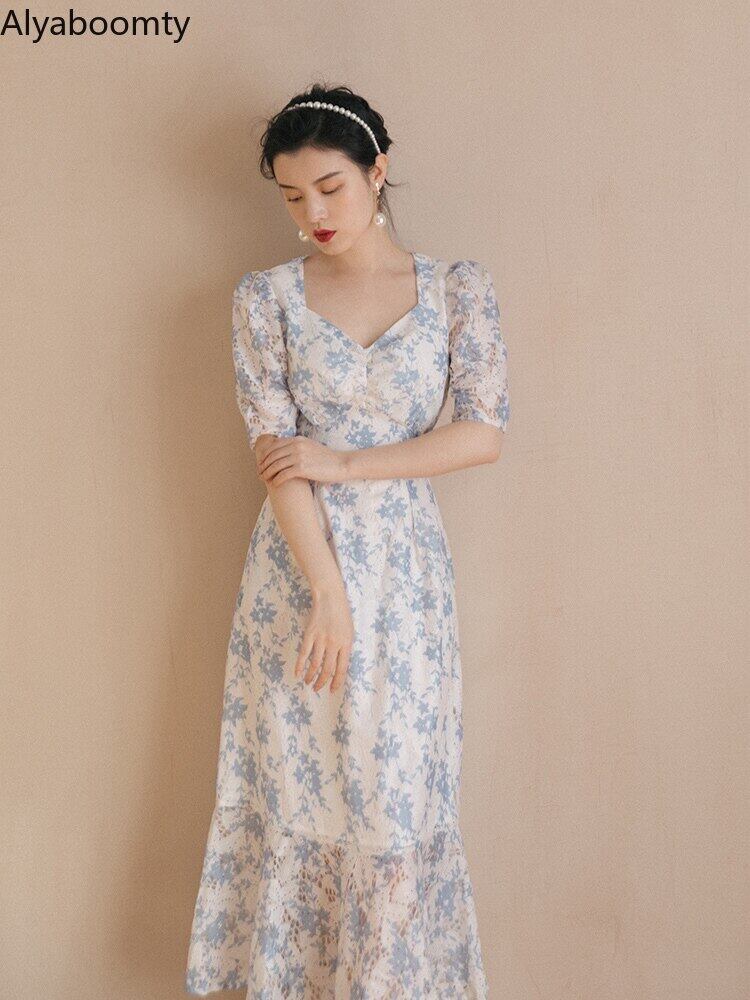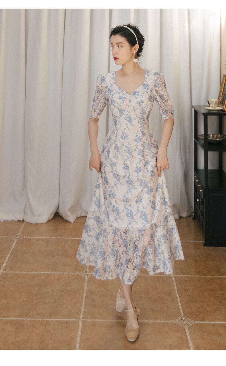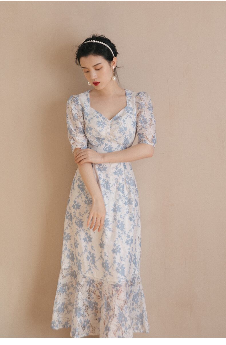 送料無料୨♥୧ サマーレディースドレス Vネックフローラルスリーブフリルロング ラッフル 夏物 花柄 AOS73979518127