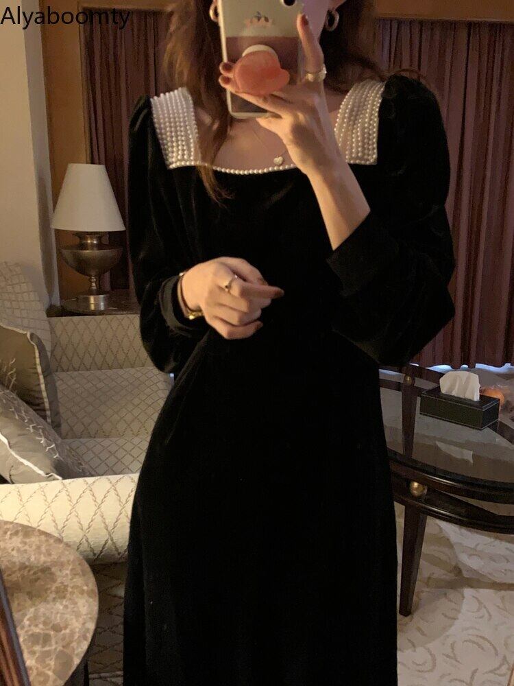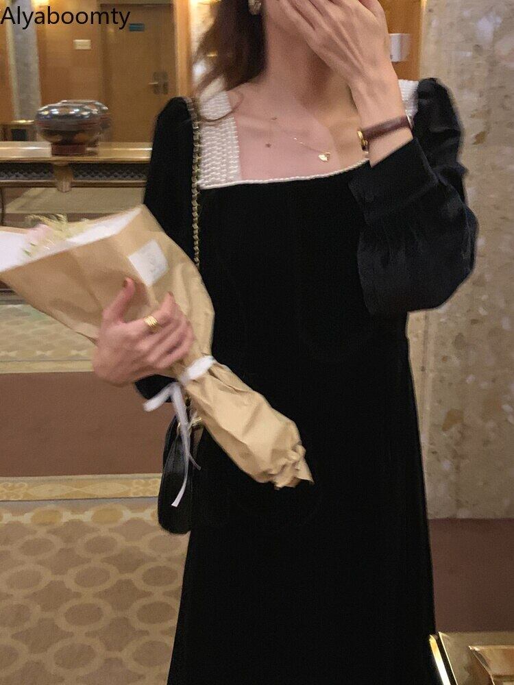 送料無料୨♥୧ スプリングオータムレディースロングドレス カラーベルベットバックレスヴィンテージ 春物 秋物 スクウェア ビンテージ AOS8340549783
