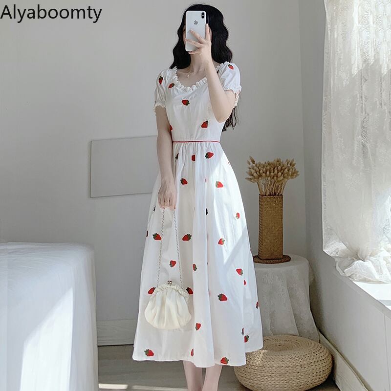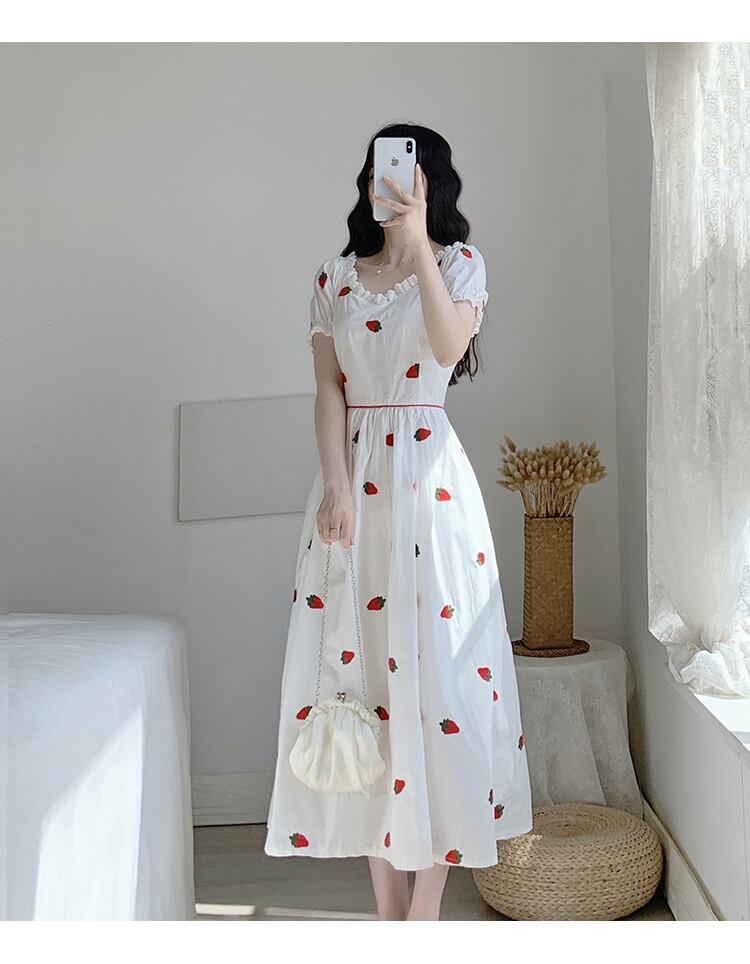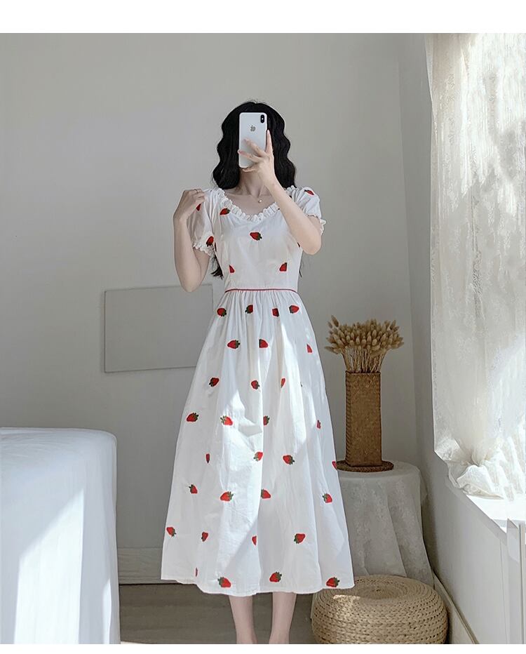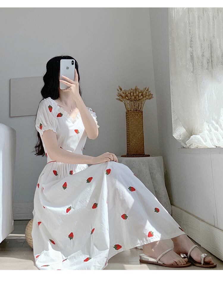 送料無料୨♥୧ サマーレディースホワイトミディドレス Vネック刺繍半袖スリーブドレス ワンピース ショート コットン ハーフスリーブ 大人ガーリー スウィート キュート カジュアル 夏物 AOS80345169689
