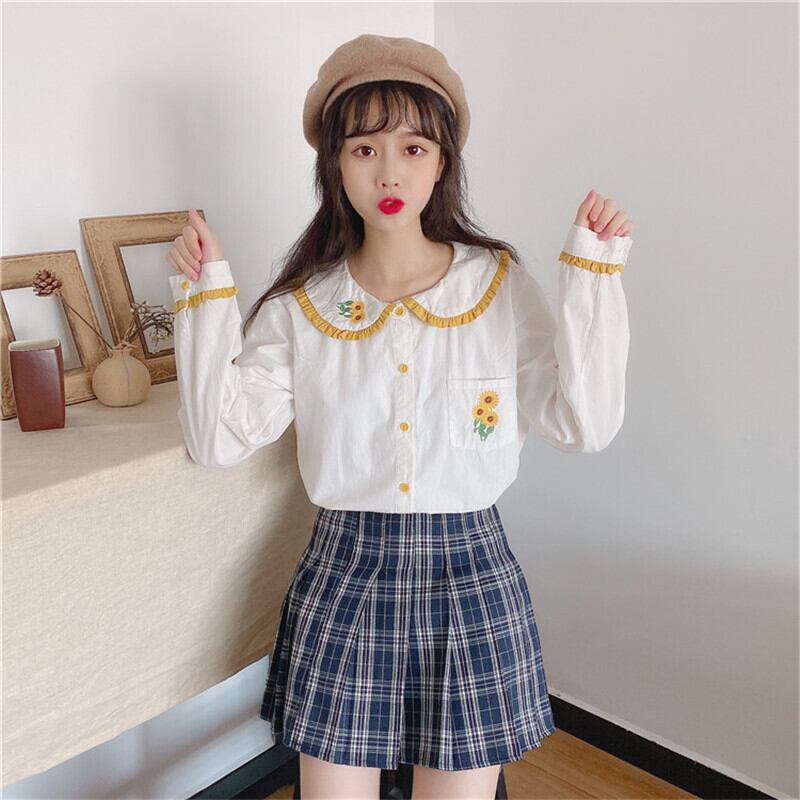 送料無料୨♥୧ スタイルレディーススプリングオータムホワイトブラウス カラー刺繍トップス 大人ガーリー スウィート キュート カジュアル 春物 秋物 フラワーデザイン AOS4759119322
