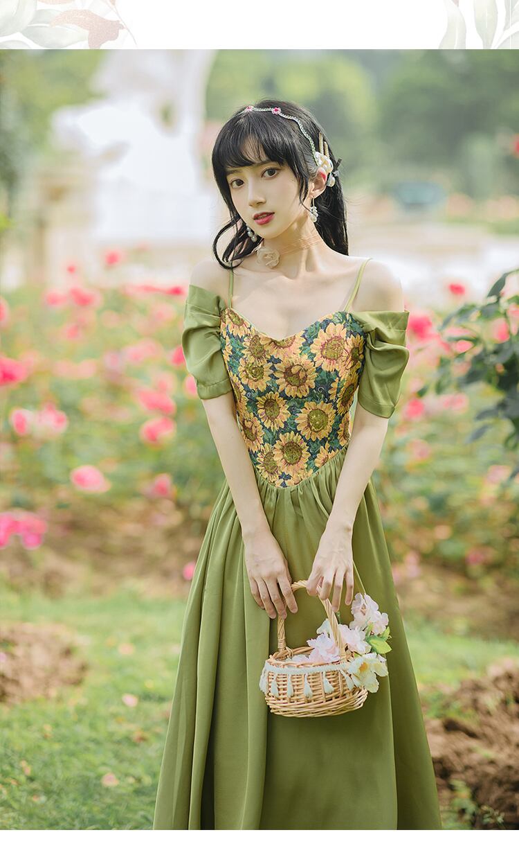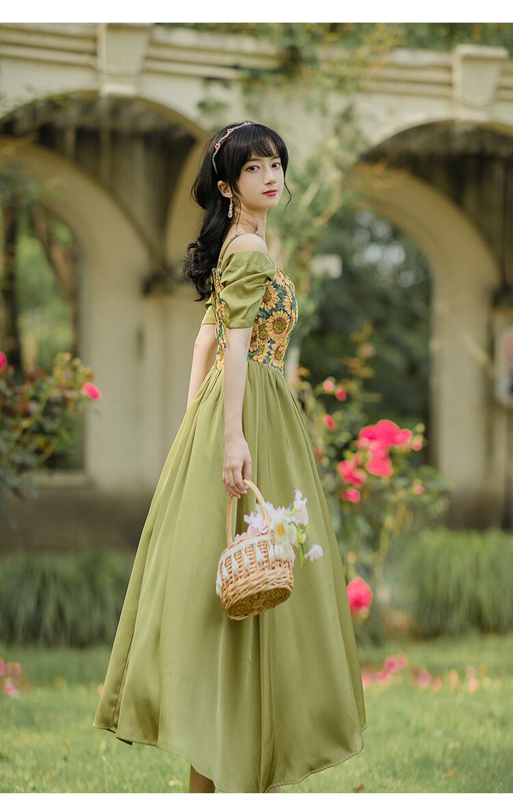 送料無料୨♥୧ サマーレディースロングドレス 刺繍ヴィンテージミディ 夏物 フラワーデザイン ビンテージ AOS39939426009