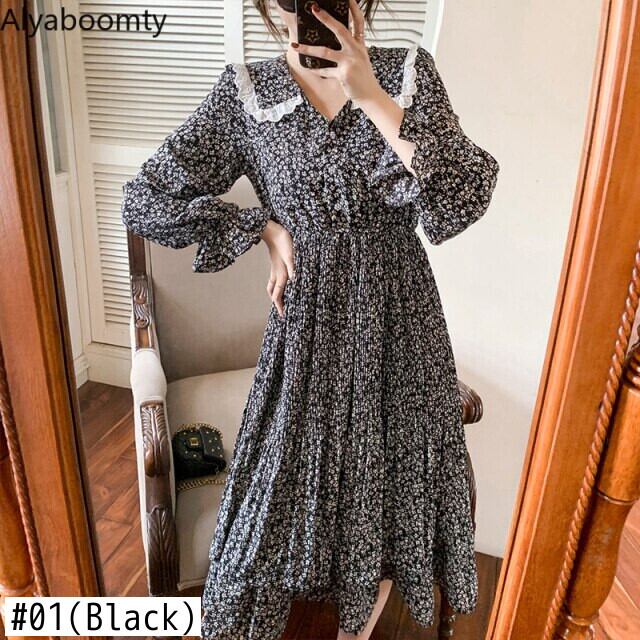 送料無料୨♥୧ スプリングオータムレディースドレス カラーブラックフローラルプリントフリルシフォン レッド ラッフル 大人ガーリー スウィート キュート カジュアル 春物 秋物 花柄 AOS46368764210