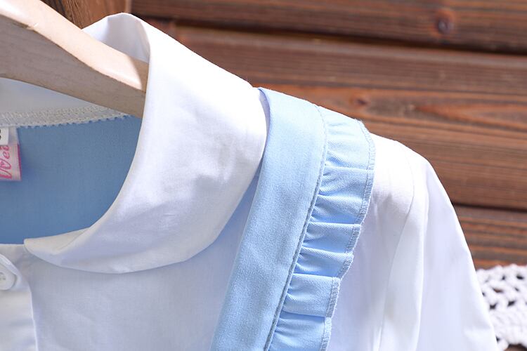 送料無料୨♥୧ スタイルスプリングオータムレディースドレス カラー刺繍パッチワークフリル ホワイト ブルー ラッフル 大人ガーリー スウィート キュート カジュアル 春物 秋物 AOS27716706438