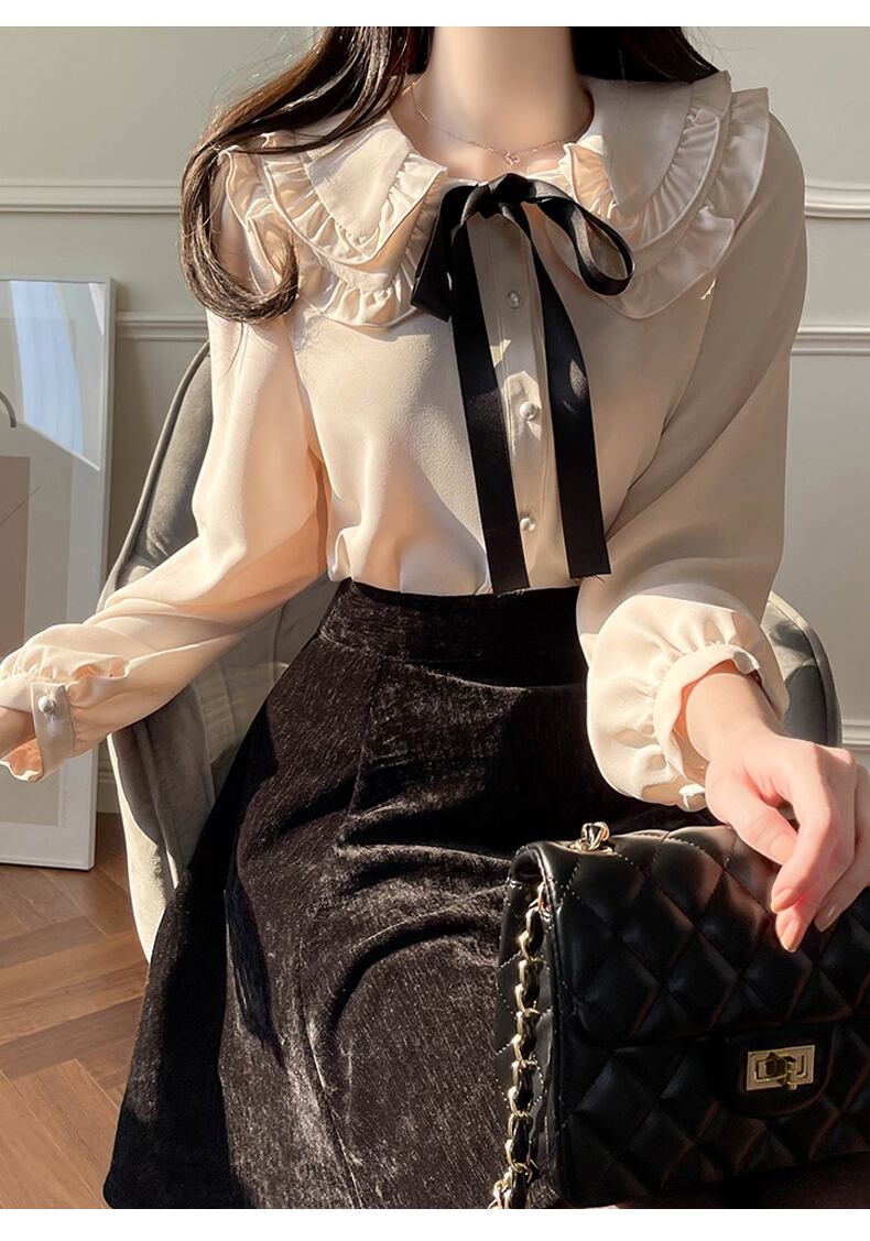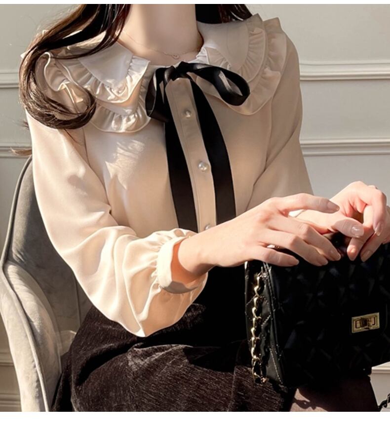 送料無料୨♥୧ スプリングオータムレディースブラウス カラーソリッド ルーズ長袖スリーブシャツ ロング 大人ガーリー スウィート キュート カジュアル 春物 秋物 ソリッドカラー AOS48913617482