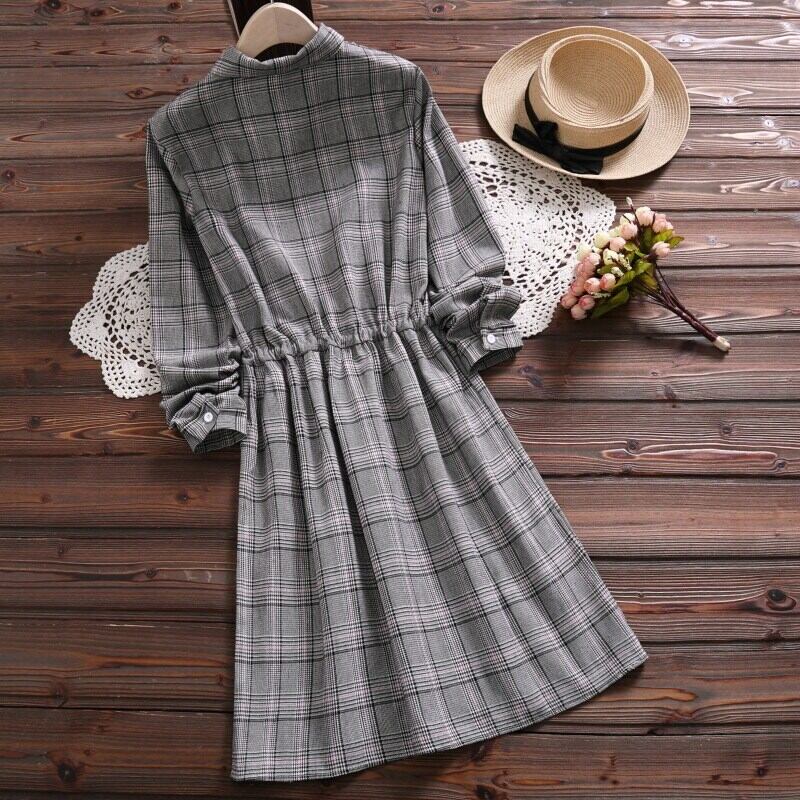 送料無料୨♥୧ スプリングレディース格子柄ドレス カラールーズヴィンテージ長袖スリーブドレス ワンピース ロング 大人ガーリー スウィート キュート カジュアル 春物 ビンテージ AOS64962280236