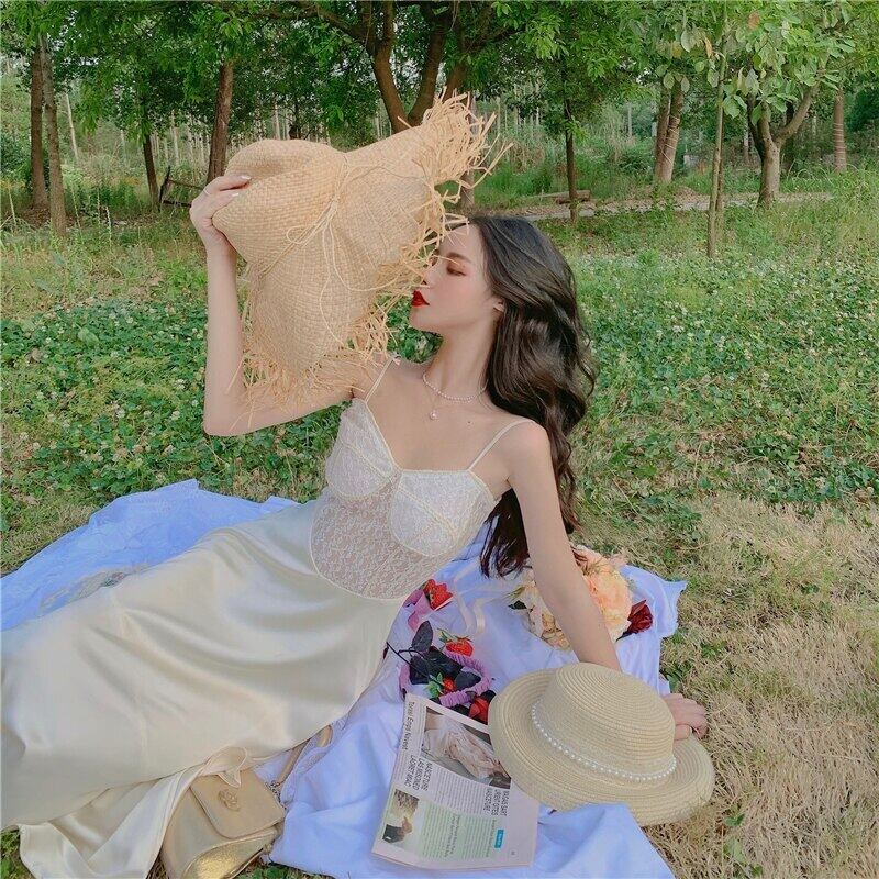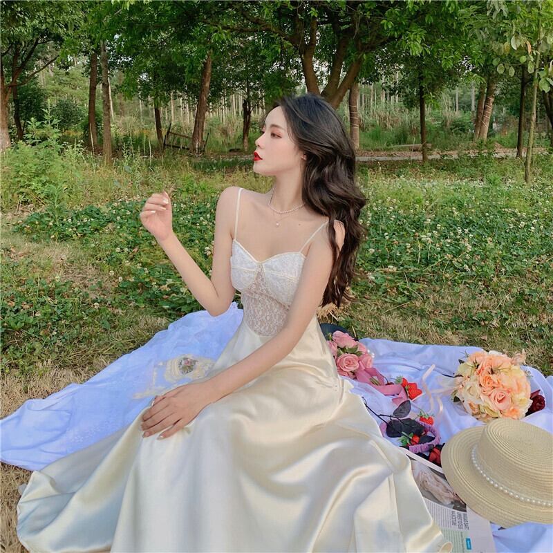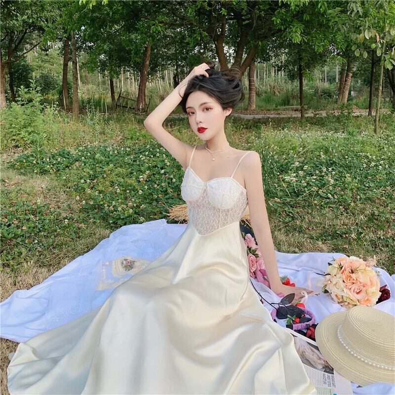 送料無料୨♥୧ サマーレディースマキシドレス 刺繍サテンバックレスロング 夏物 AOS12639923851