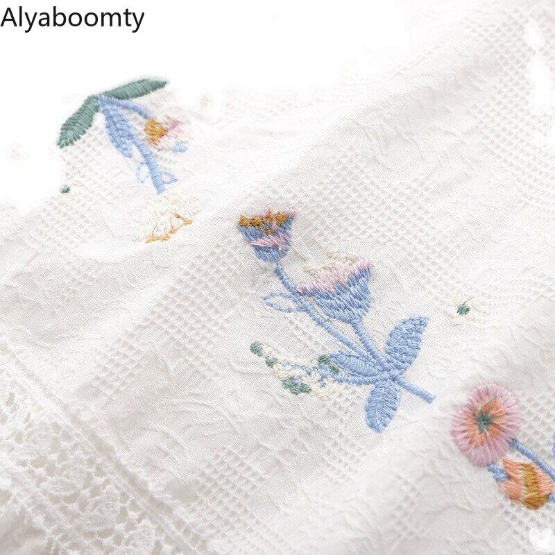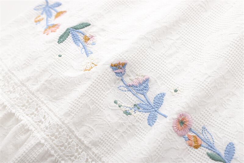 送料無料୨♥୧ サマーオータムレディースホワイトミディスカート ウェストフローラル刺繍 コットン 大人ガーリー スウィート キュート カジュアル 夏物 秋物 花柄 AOS38474918861