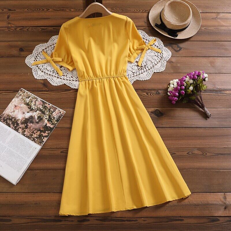 送料無料୨♥୧ サマーレディースグリーンイエローAラインドレス 夏物 AOS30415669457