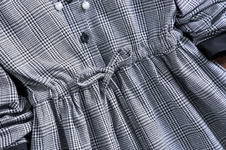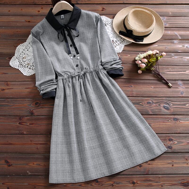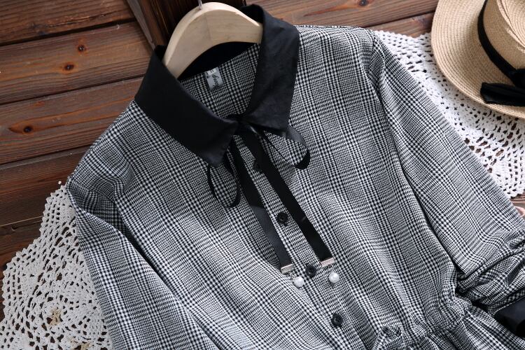 送料無料୨♥୧ オータムスプリングレディーススタンダードドレス カラー格子柄レース長袖スリーブルーズドレス ワンピース ロング レトロ 大人ガーリー スウィート キュート カジュアル 春物 秋物 レースアップ AOS23220838816