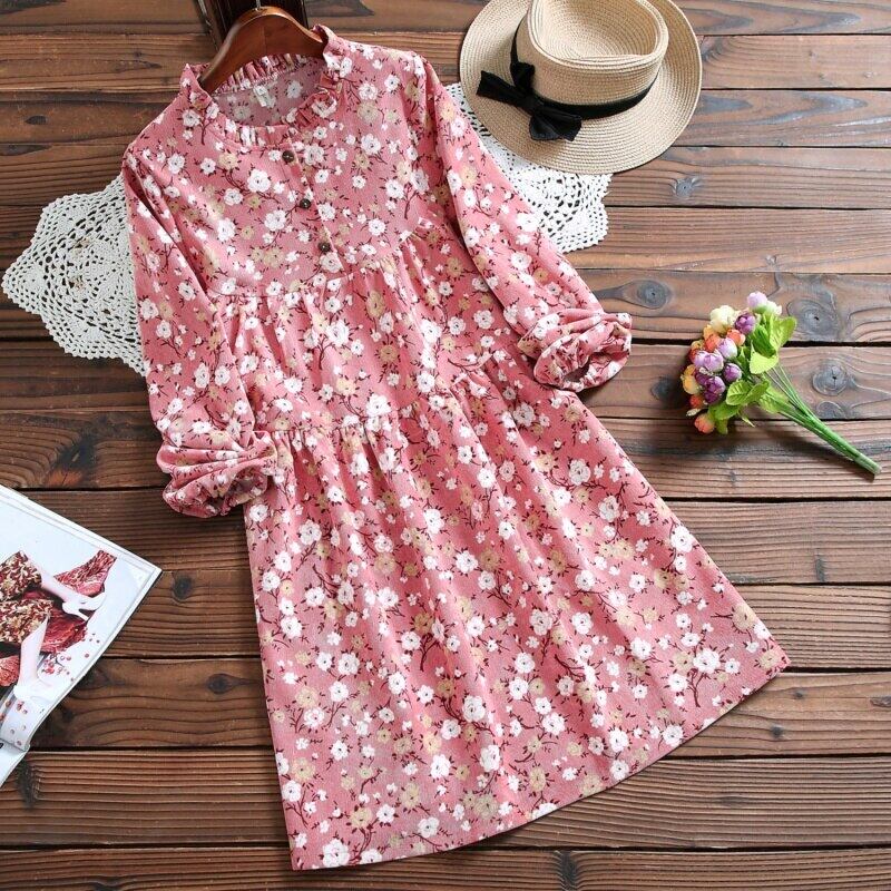 送料無料୨♥୧ オータムスプリングレディースミニドレス カラーネイビーブルーフローラルプリント ピンク 大人ガーリー スウィート キュート カジュアル 春物 秋物 花柄 AOS38705278807