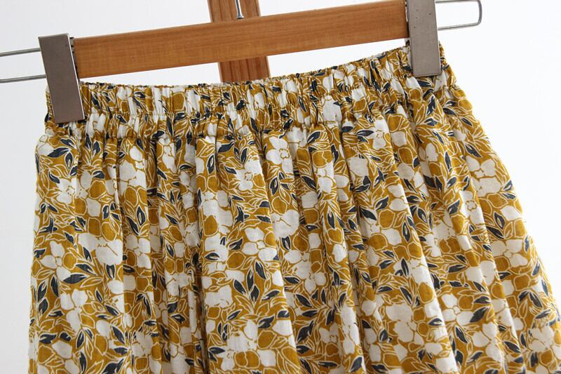 送料無料୨♥୧ サマーオータムレディースイエローミディスカート ヴィンテージフローラルプリント コットン エラスティック 伸縮 大人ガーリー スウィート キュート カジュアル 夏物 秋物 花柄 ビンテージ AOS25041984450