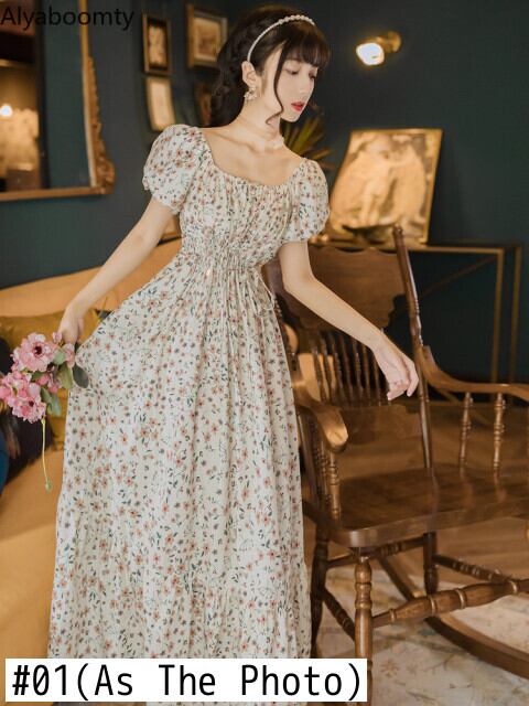 送料無料୨♥୧ サマーレディースロングドレス フローラルバンドスリーブレースドレス ワンピース 大人ガーリー スウィート キュート カジュアル 夏物 花柄 レースアップ AOS66251133040