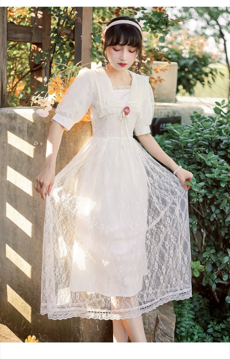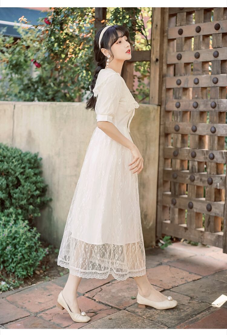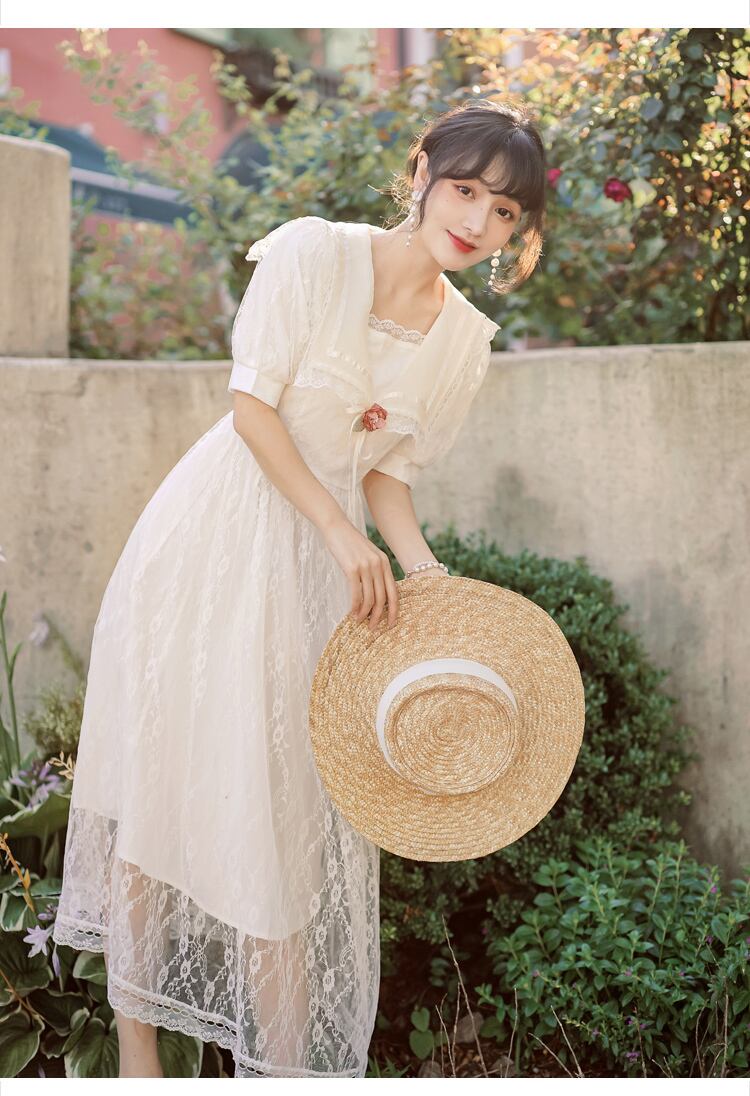 送料無料୨♥୧ サマーレディースミディドレス カラーウェストスリーブレース 大人ガーリー スウィート キュート カジュアル 夏物 AOS69671009292