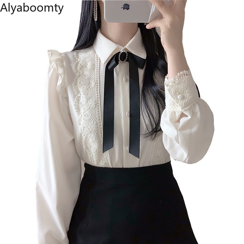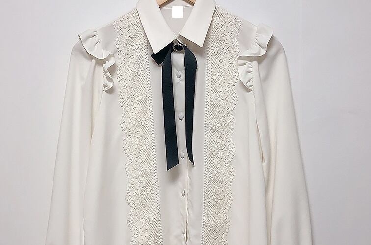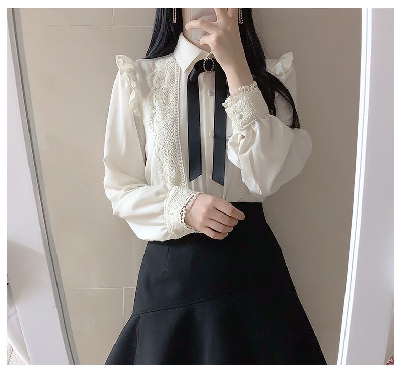 送料無料୨♥୧ スタイルスプリングレディースホワイトシャツ カラーレースブラウス 長袖スリーブトップス ロング 春物 AOS37388767388