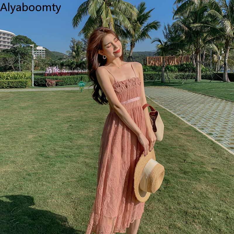 送料無料୨♥୧ サマーレディースロングレースドレス ノースリーブ 大人ガーリー スウィート キュート カジュアル 夏物 ビーチ AOS93757683934